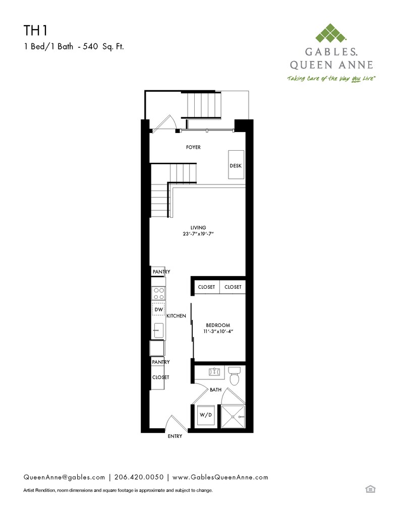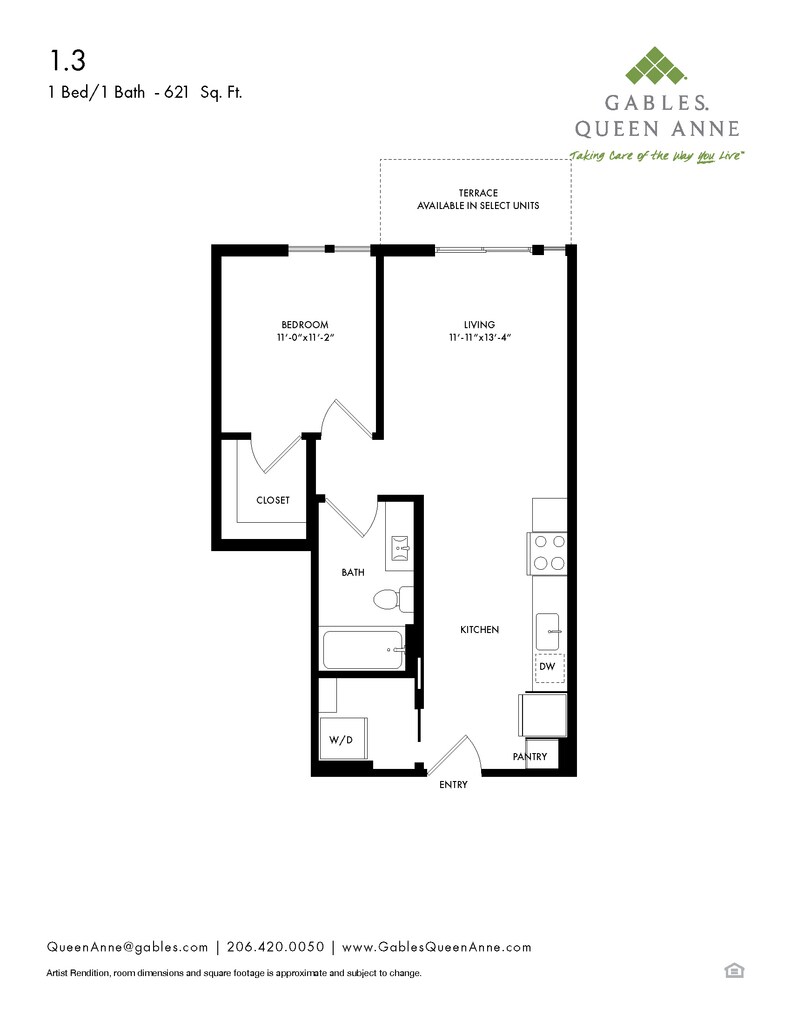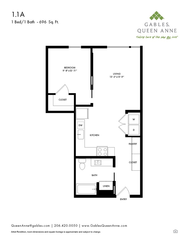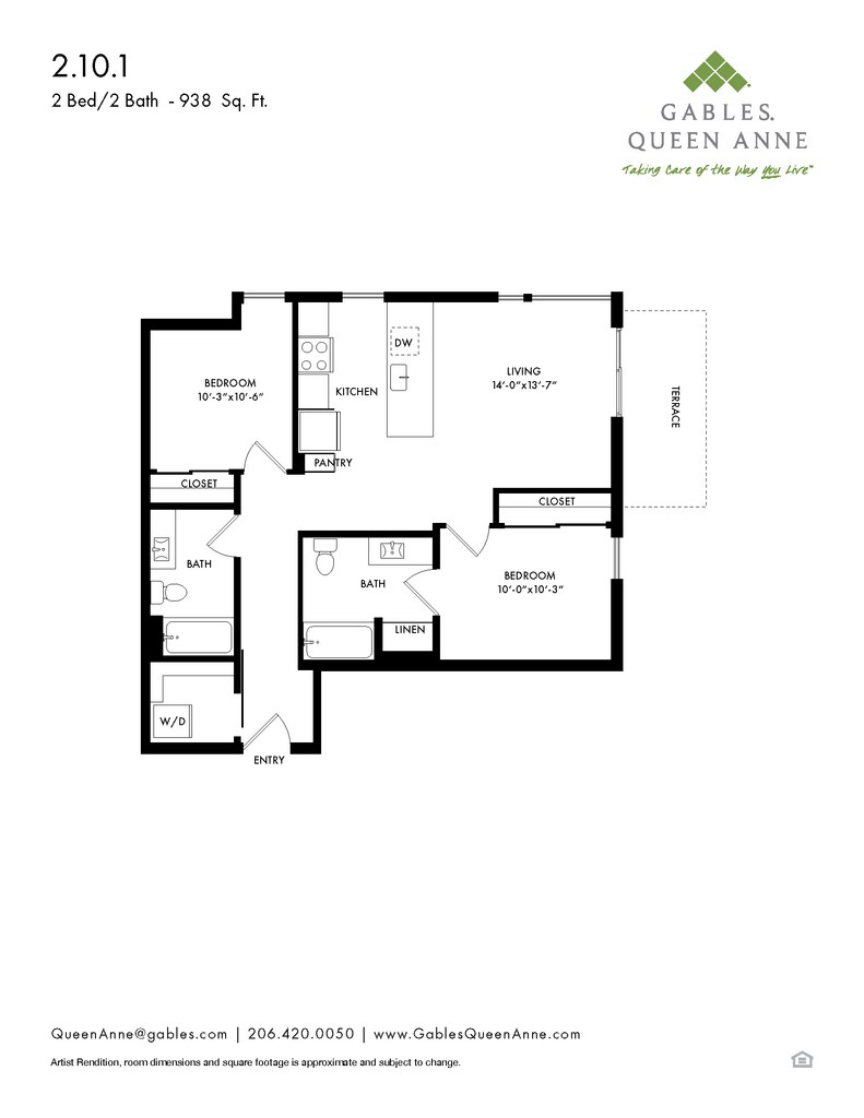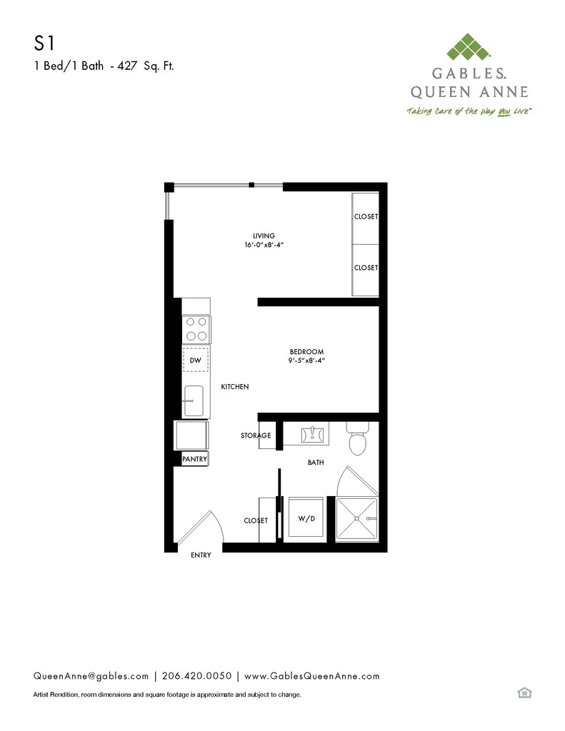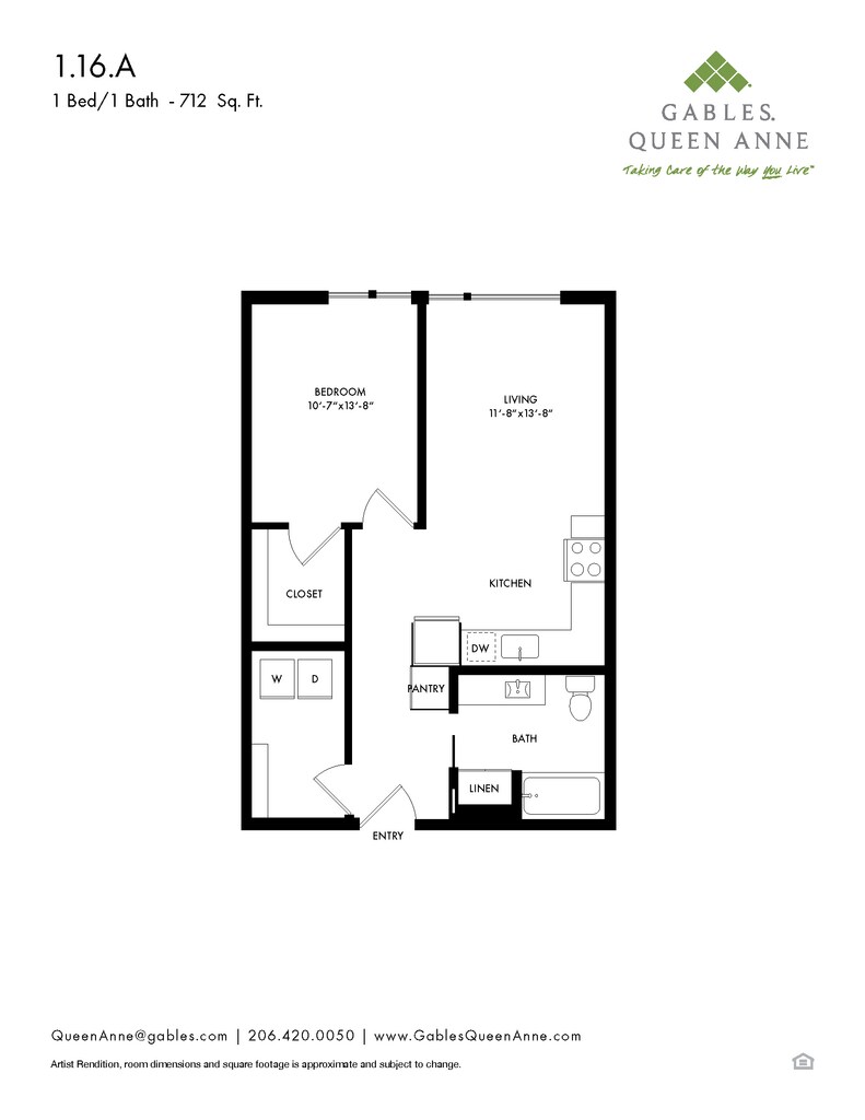Gables Queen Anne offers Studio to 2 Bedroom apartments starting from $1,810 and having 301–1,467 sq ft. Here is the current pricing and availability: