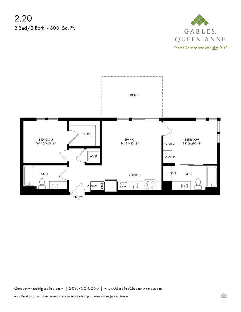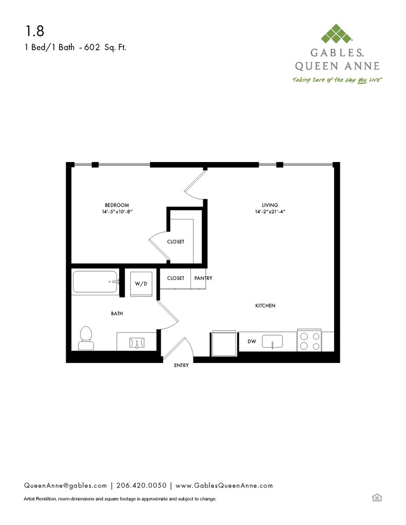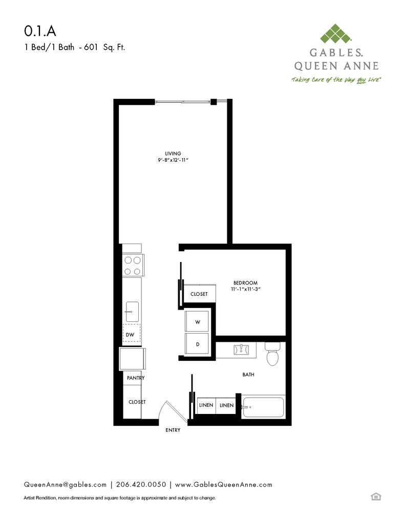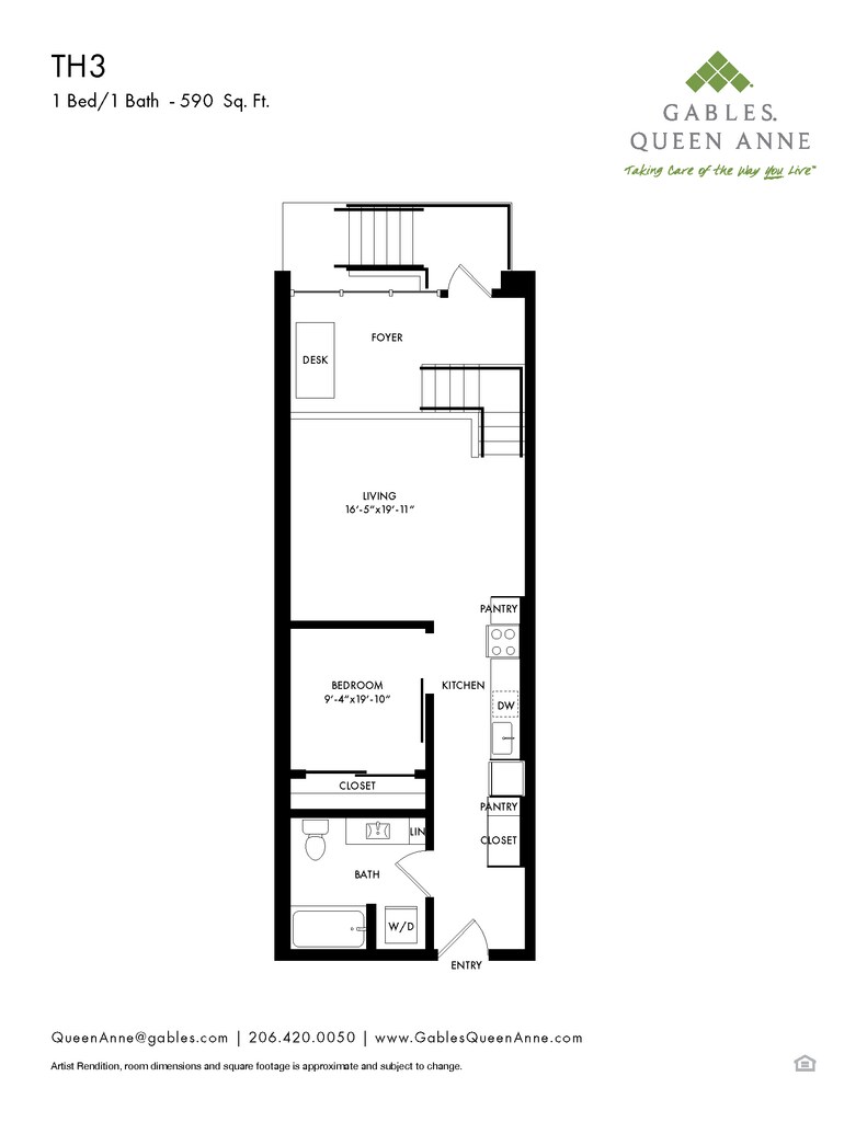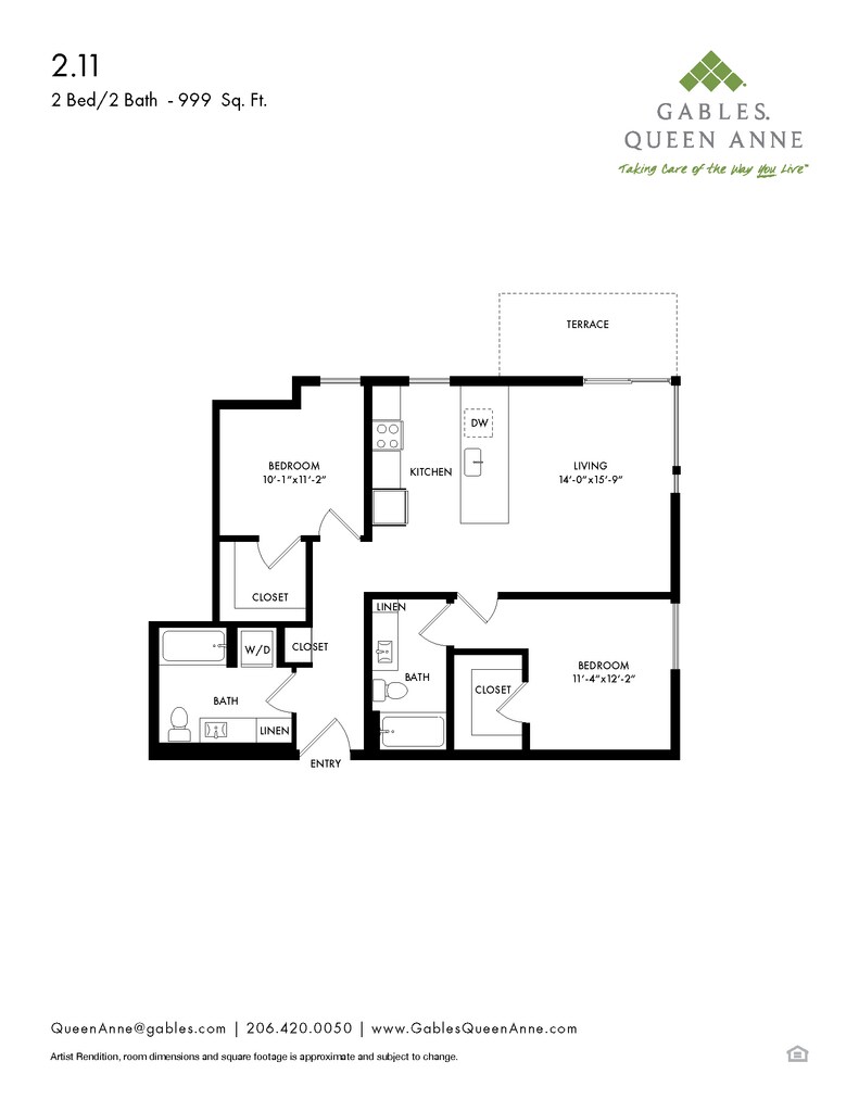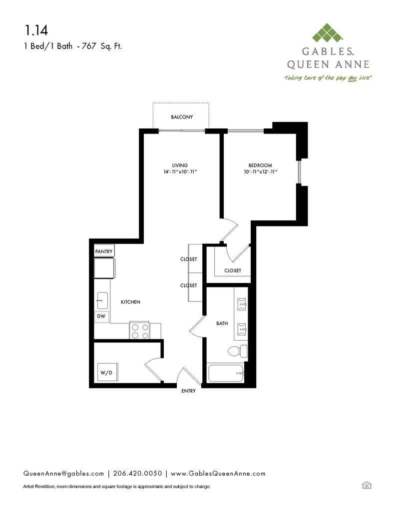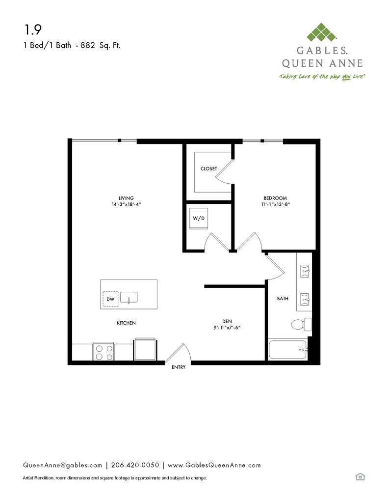 Gables Queen Anne offers Studio to 2 Bedroom apartments starting from $1,810 and having 301–1,467 sq ft. Here is the current pricing and availability: