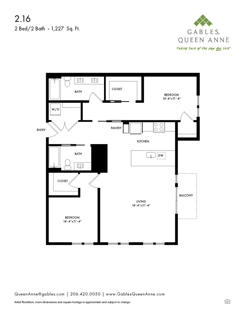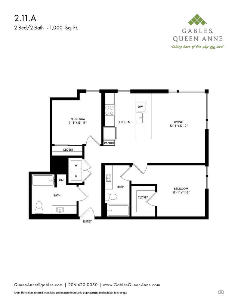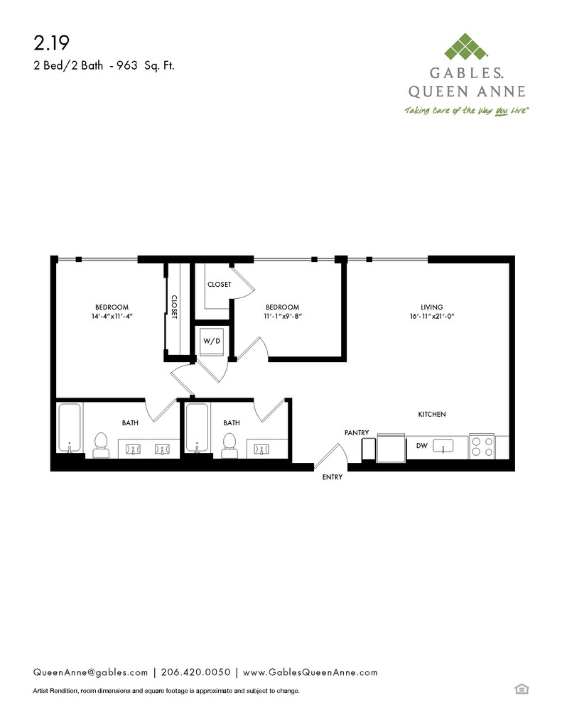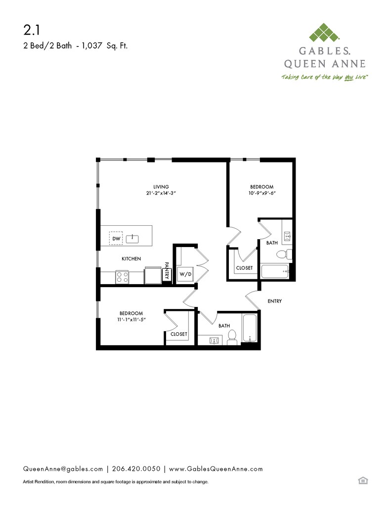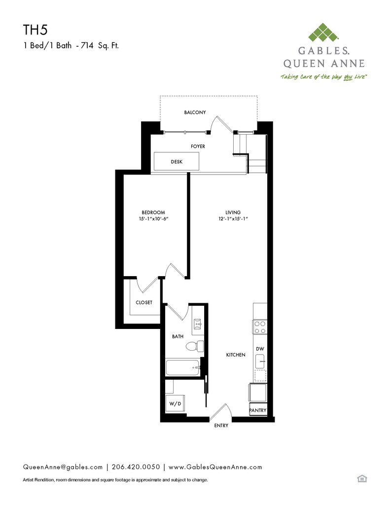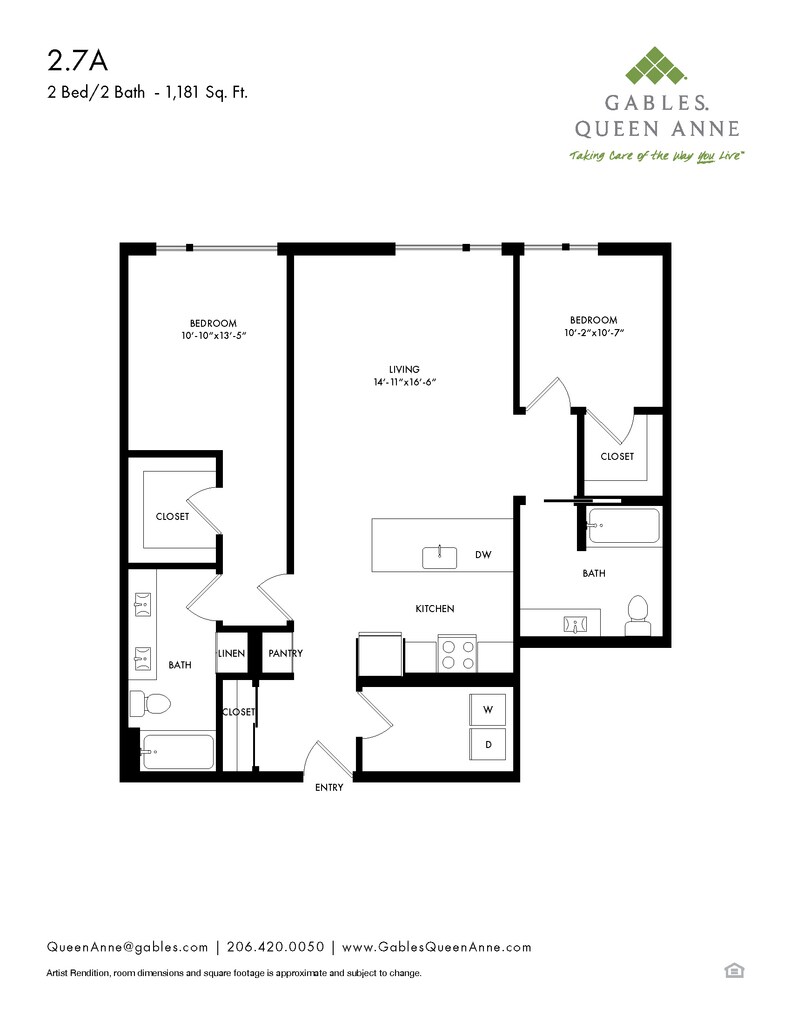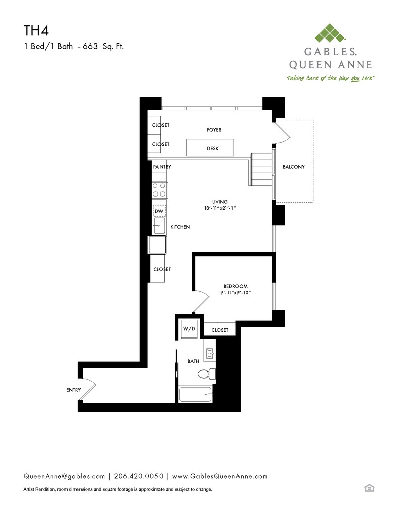 Gables Queen Anne offers Studio to 2 Bedroom apartments starting from $1,810 and having 301–1,467 sq ft. Here is the current pricing and availability: