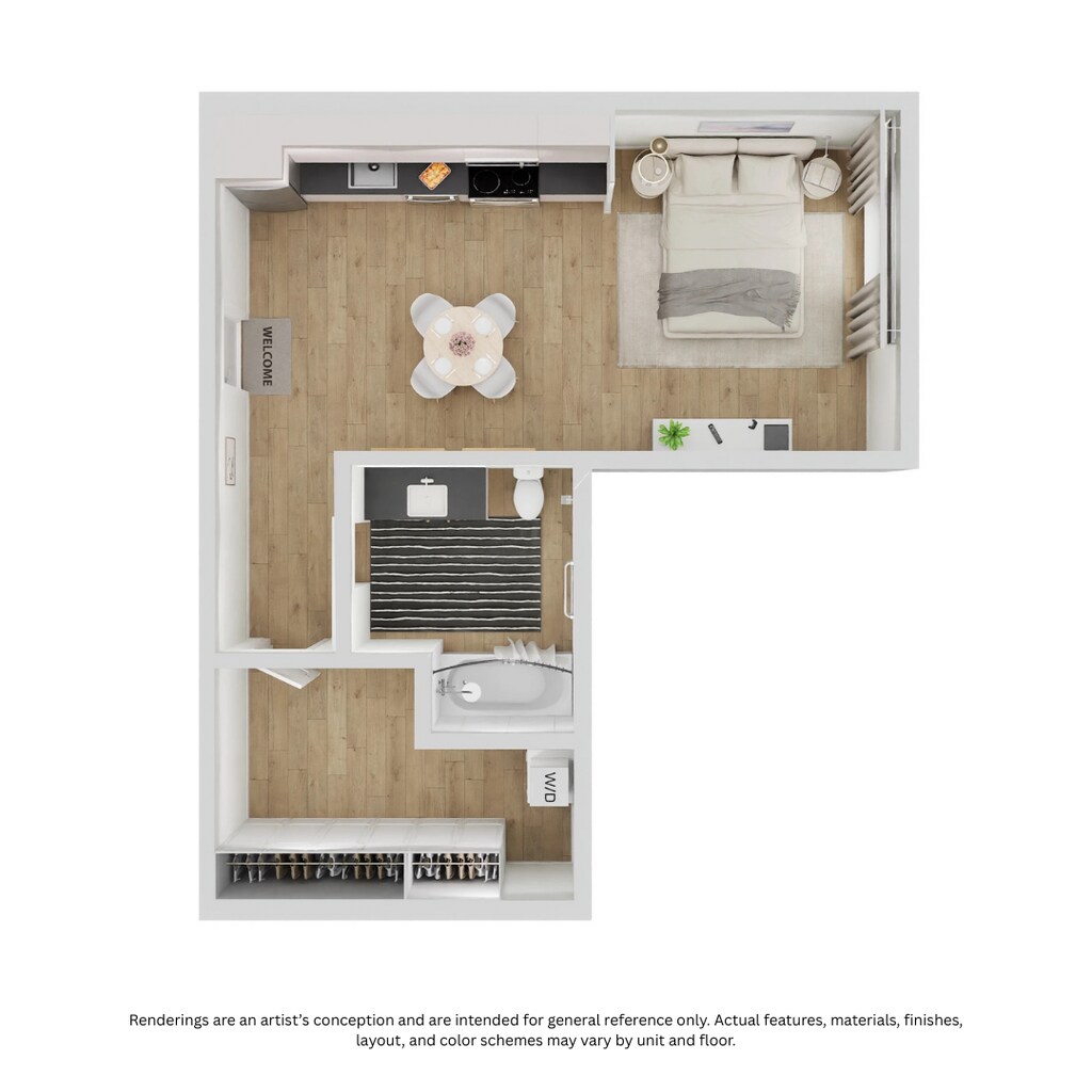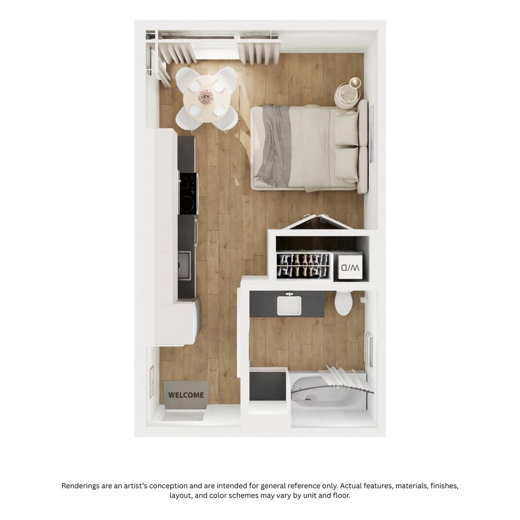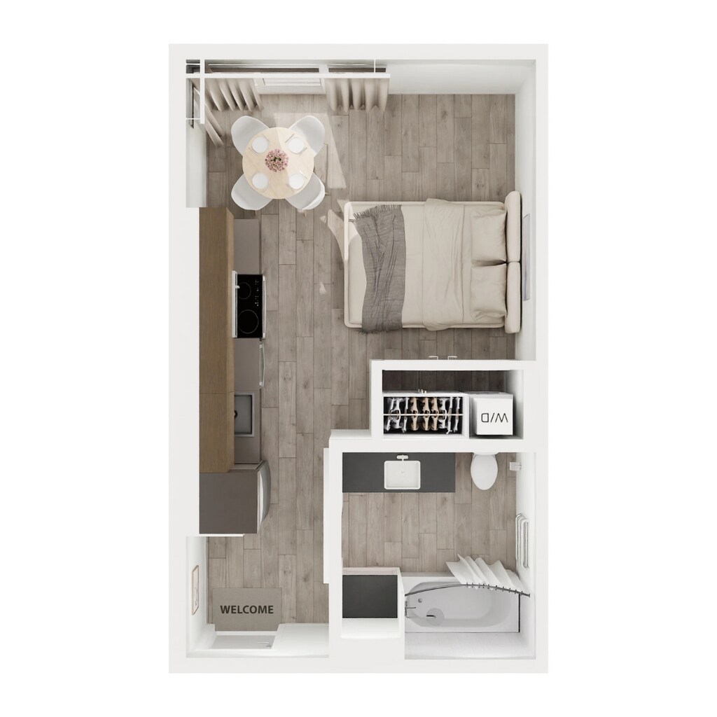 Studio, 1 Bath, 301 sq ftAvailable NowModel Gallery
