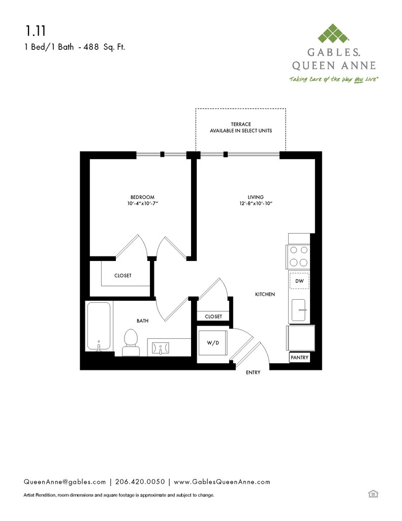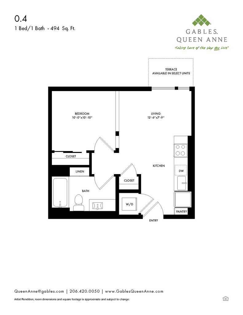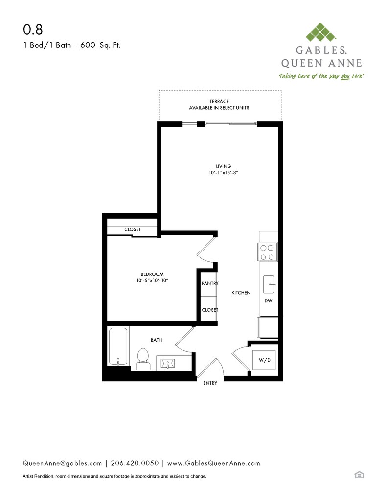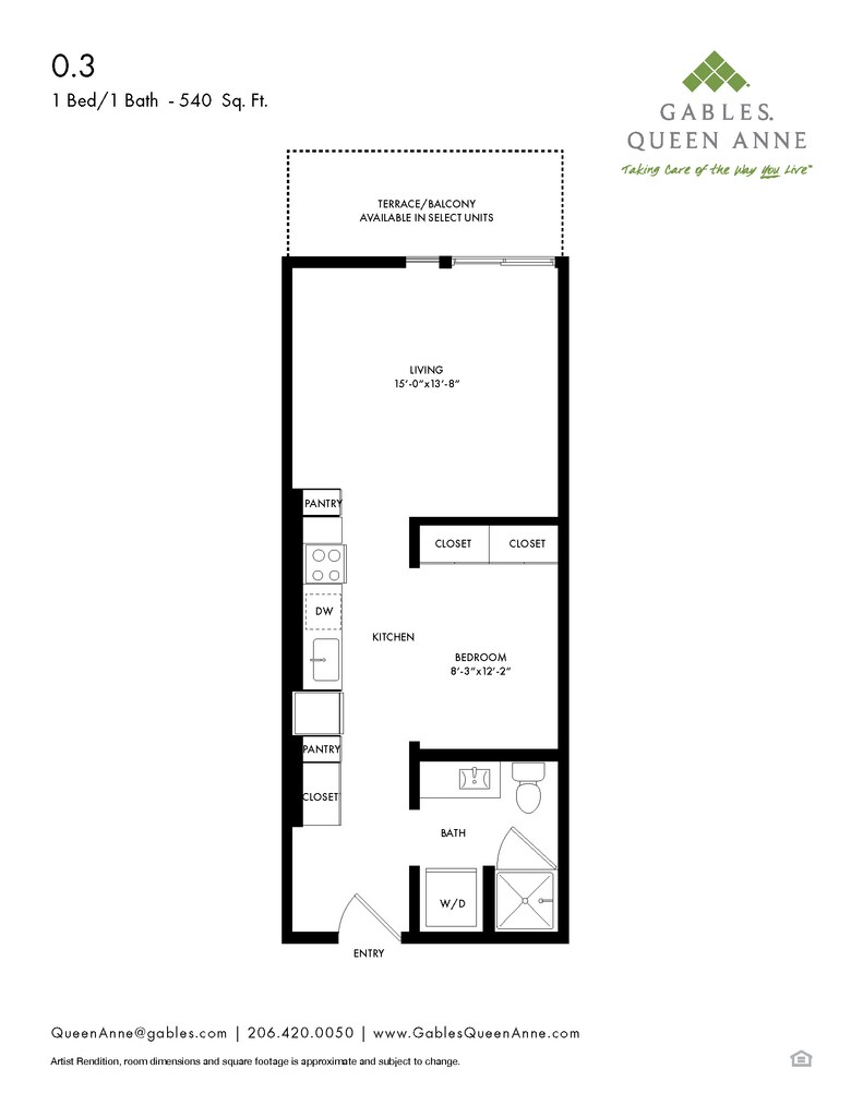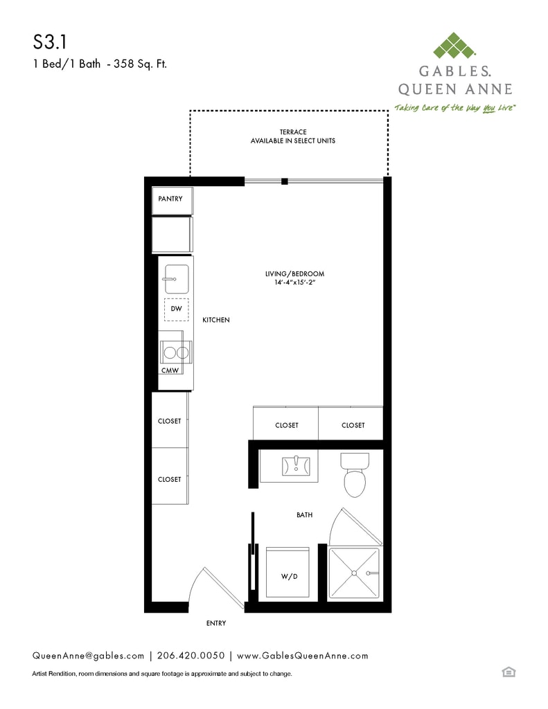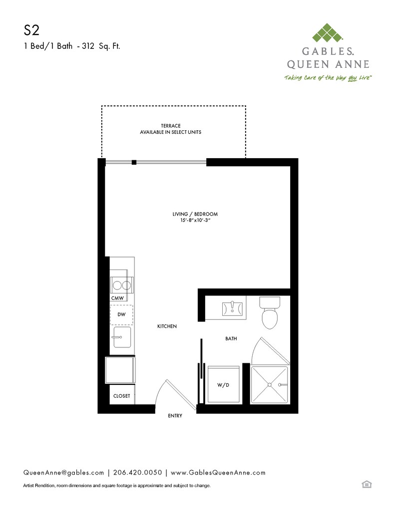 Studio to 2 Bedroom Apartments at Gables Queen Anne currently range from $1,810 to $4,957