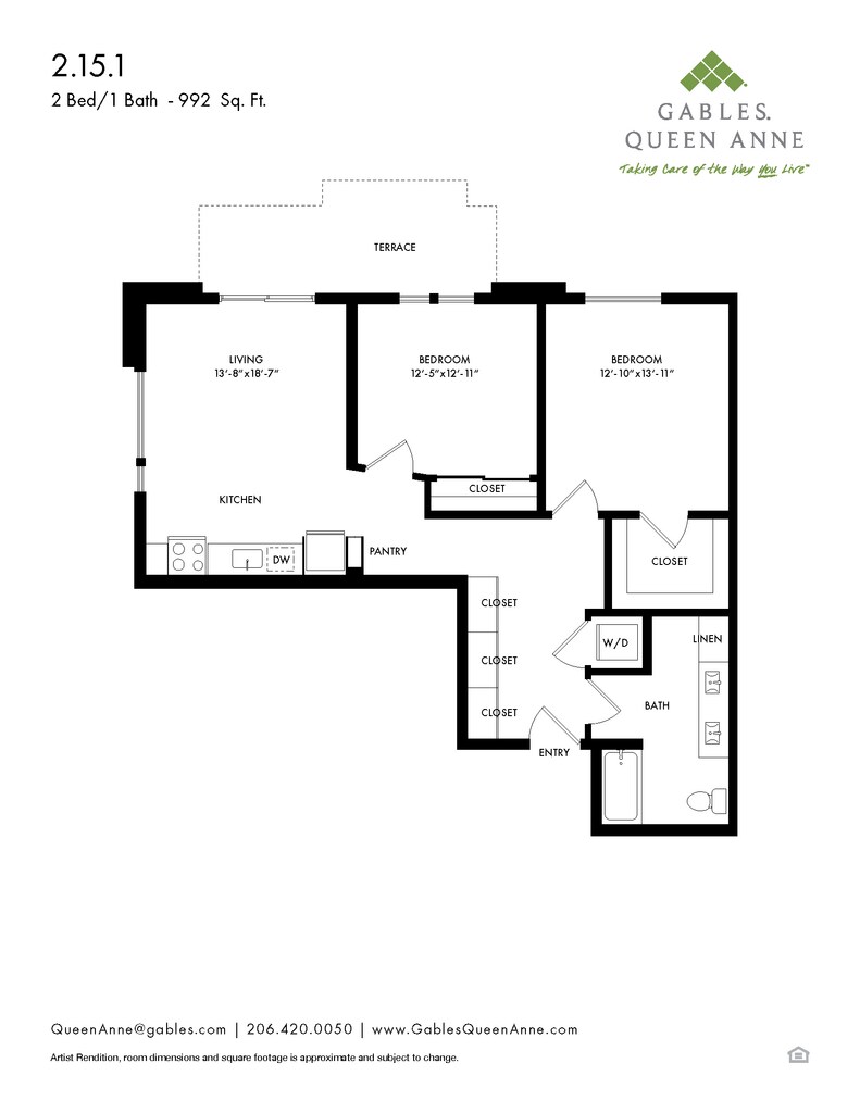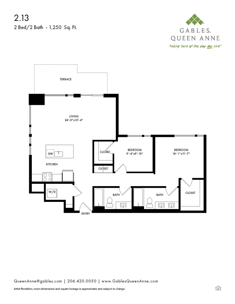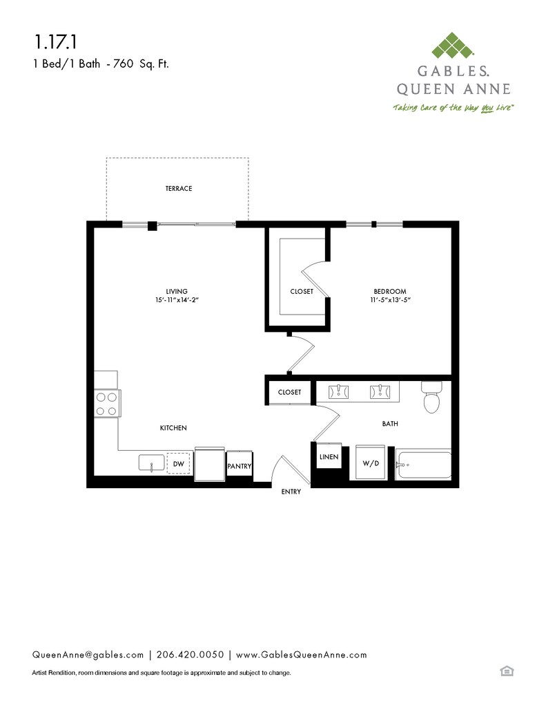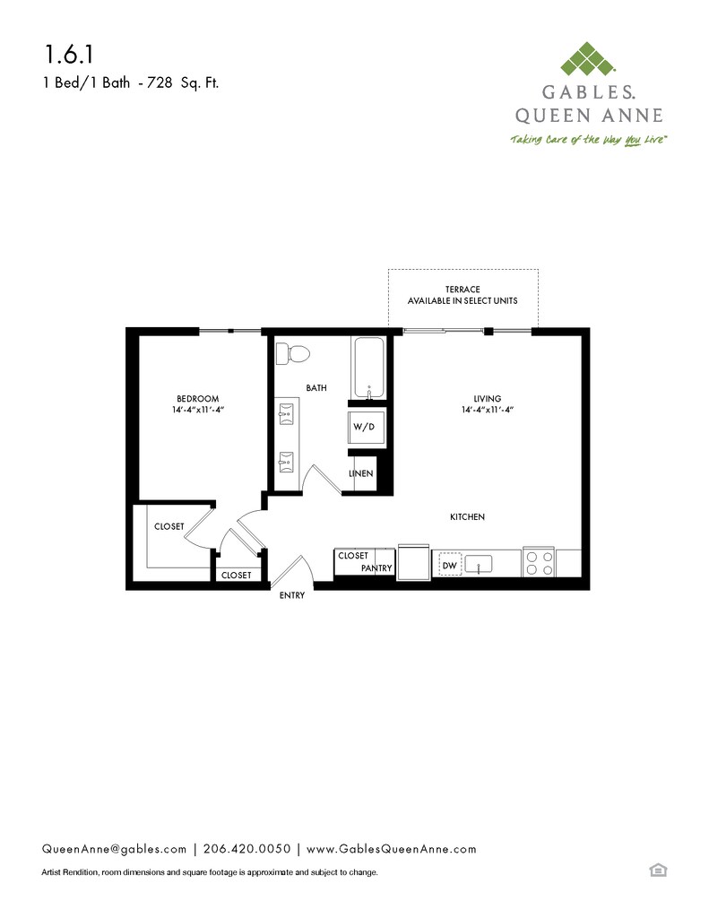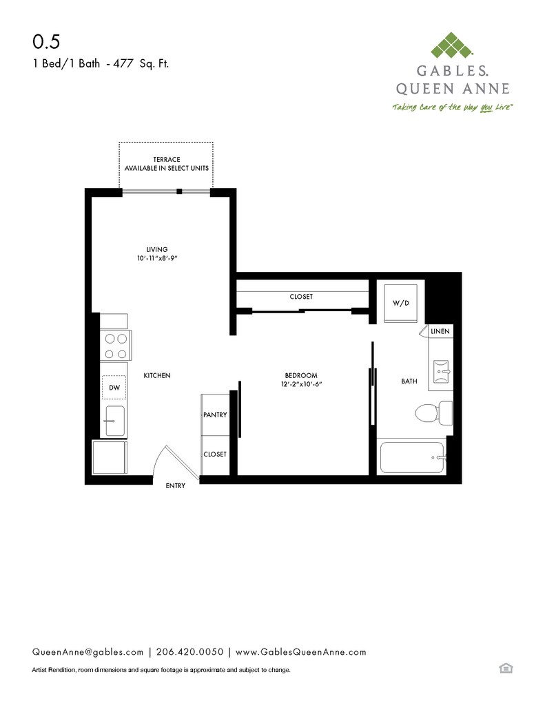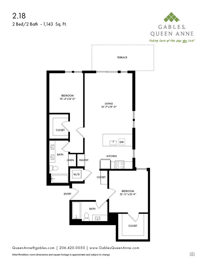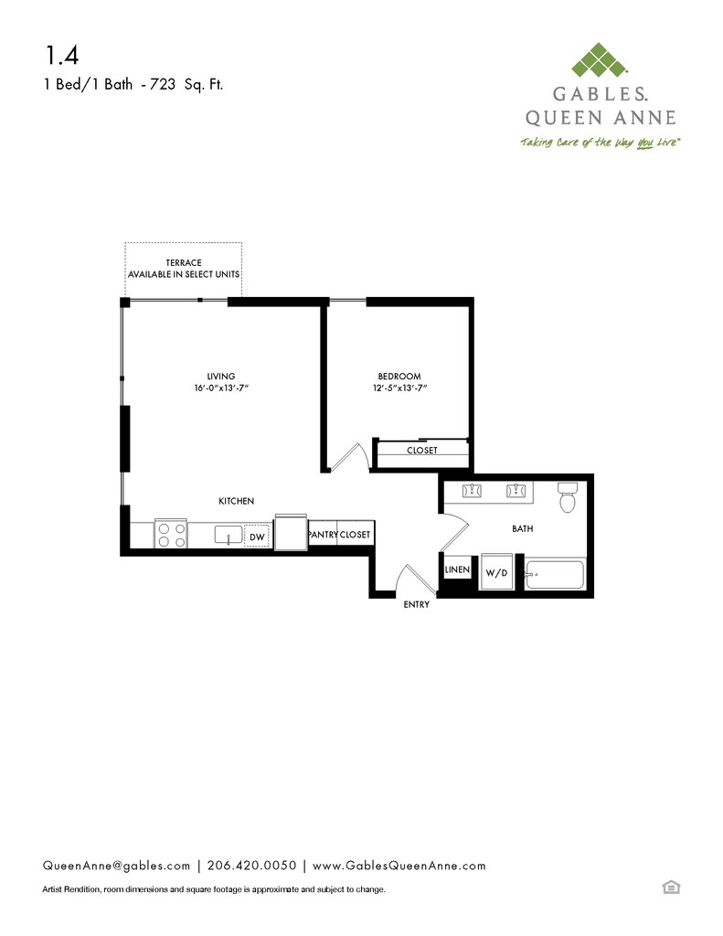 Studio to 2 Bedroom Apartments at Gables Queen Anne currently range from $1,810 to $4,957