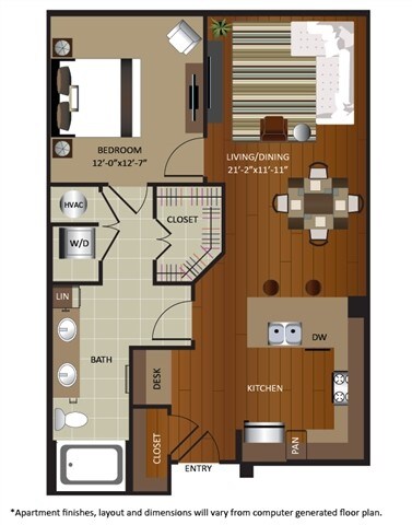 Studio, 1 Bath, 546 sq ftModel Gallery