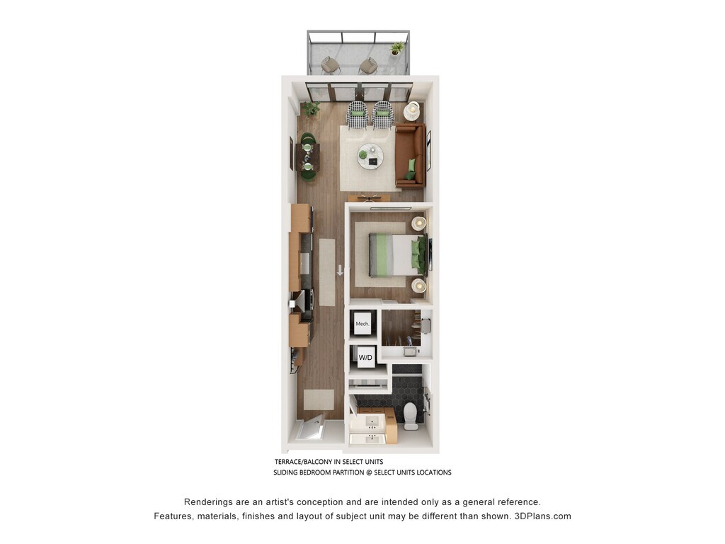 Studio, 1 Bath, 451 sq ftAvailable NowModel Gallery