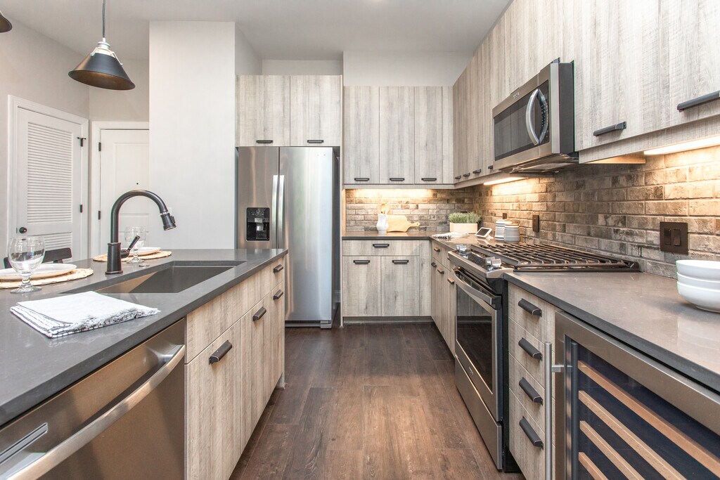 - Quartz countertops with designer backsplash