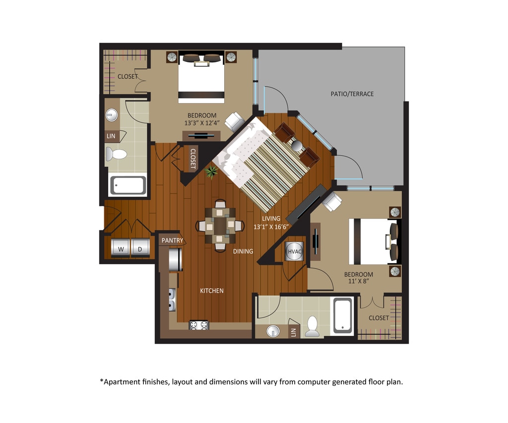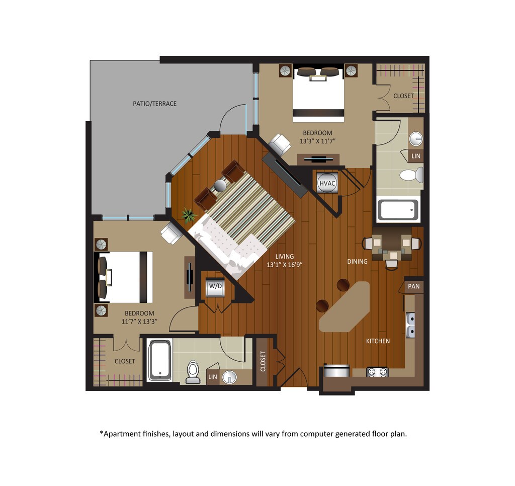 Studio, 1 Bath, 633 sq ftModel Gallery