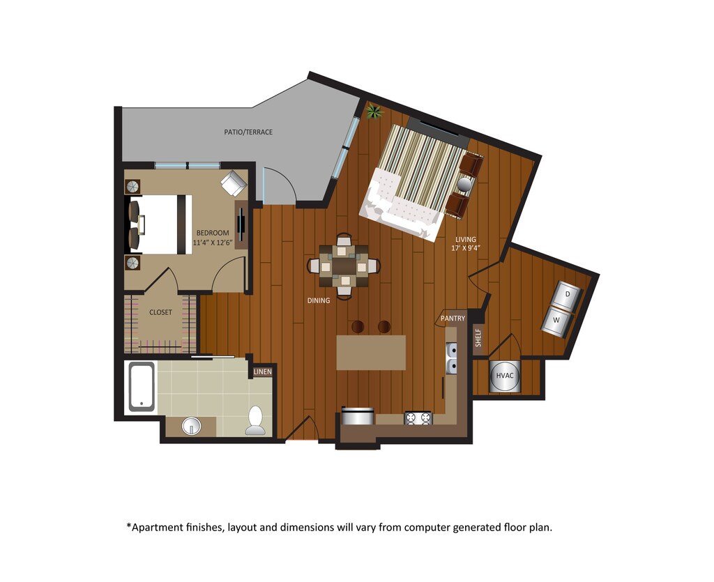 Studio, 1 Bath, 699 sq ftModel Gallery