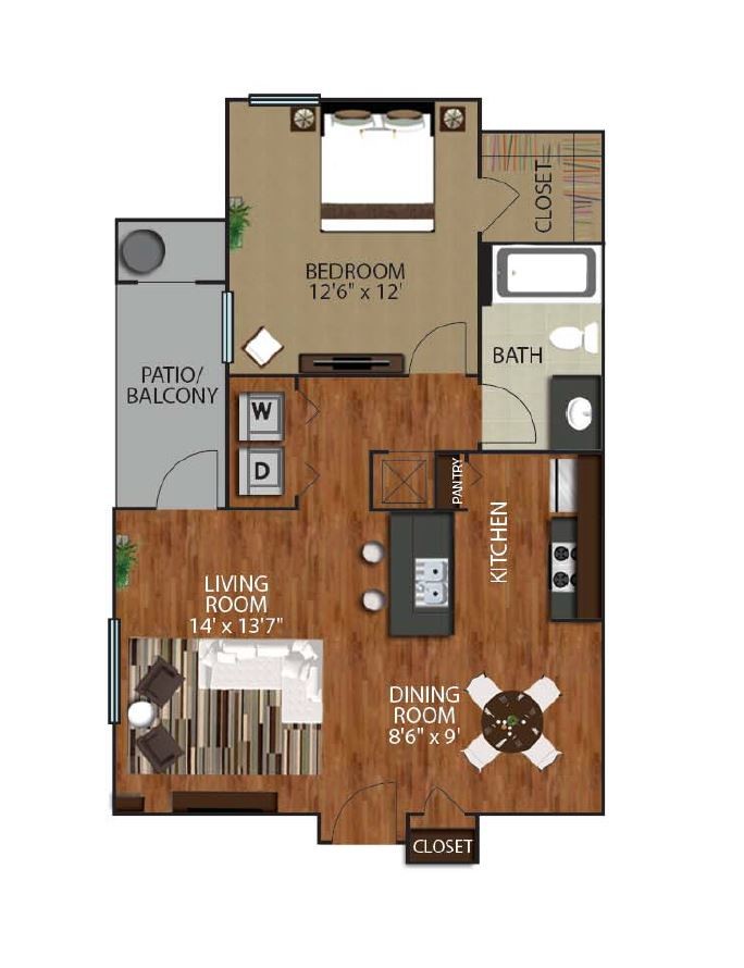Apartment Model: A1From $1,3191 Bedroom, 1 Bath, 691 sq ftAvailable Now![]()