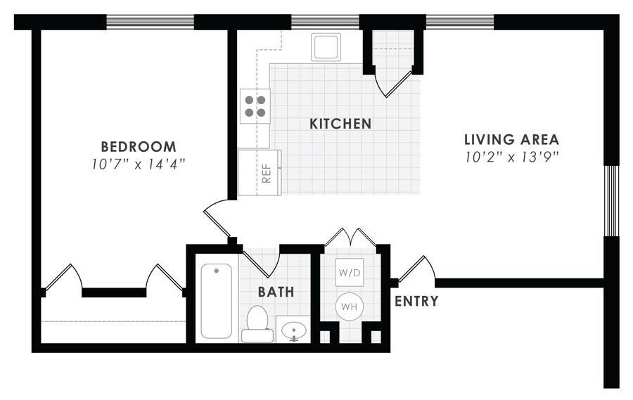 Studio | 1 Bath - Floorplan 1 1 Bedroom