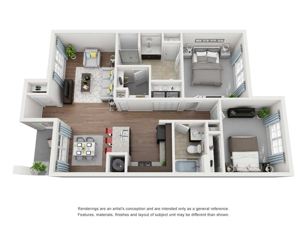 2 Beds, 2 Baths, 1015 sq ftModel Gallery