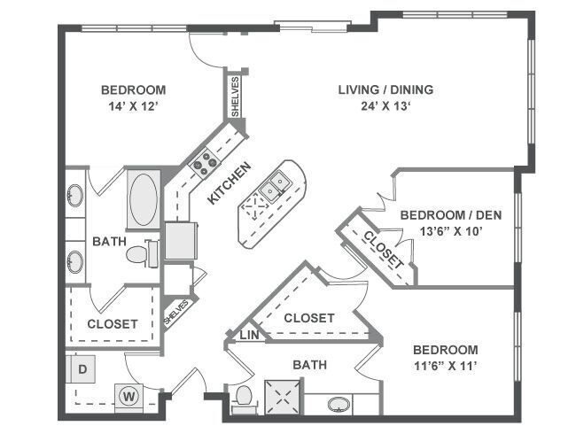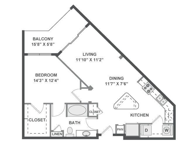Apartment Unit: 144Apartment Model: A4R1 Bedroom, 1 Bath, 818 sq ftAvailable NowFloorplan A5