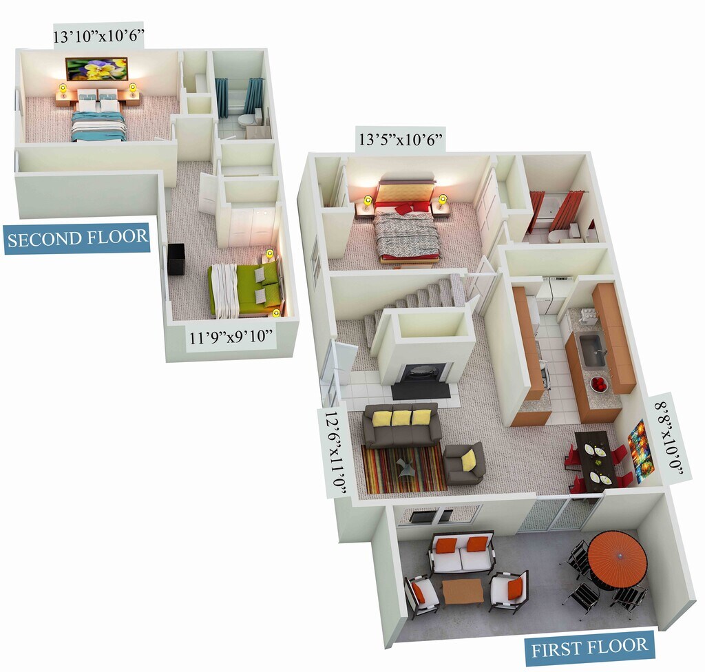 3 Beds, 2 Baths, 1155 sq ftAvailable NowModel Gallery