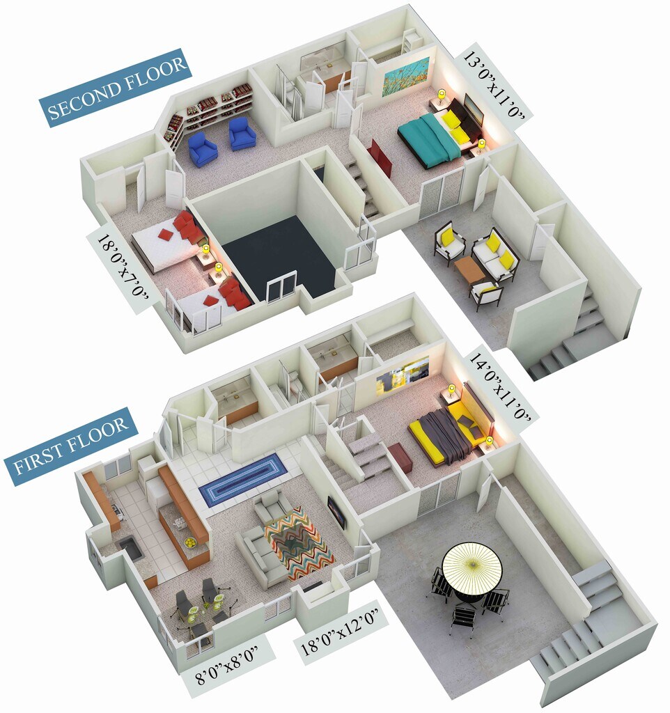 3 Beds, 2 Baths, 1280 sq ftModel Gallery