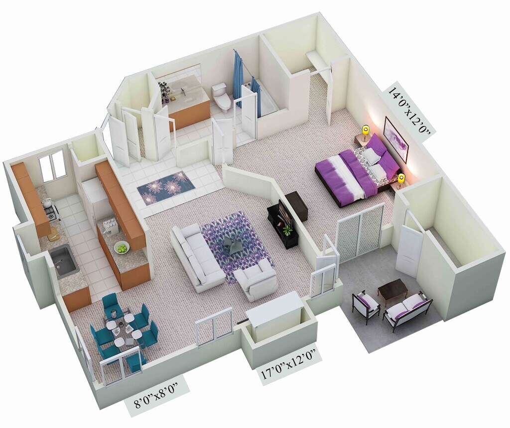 1 Bed, 1 Bath, 840 sq ftModel Gallery