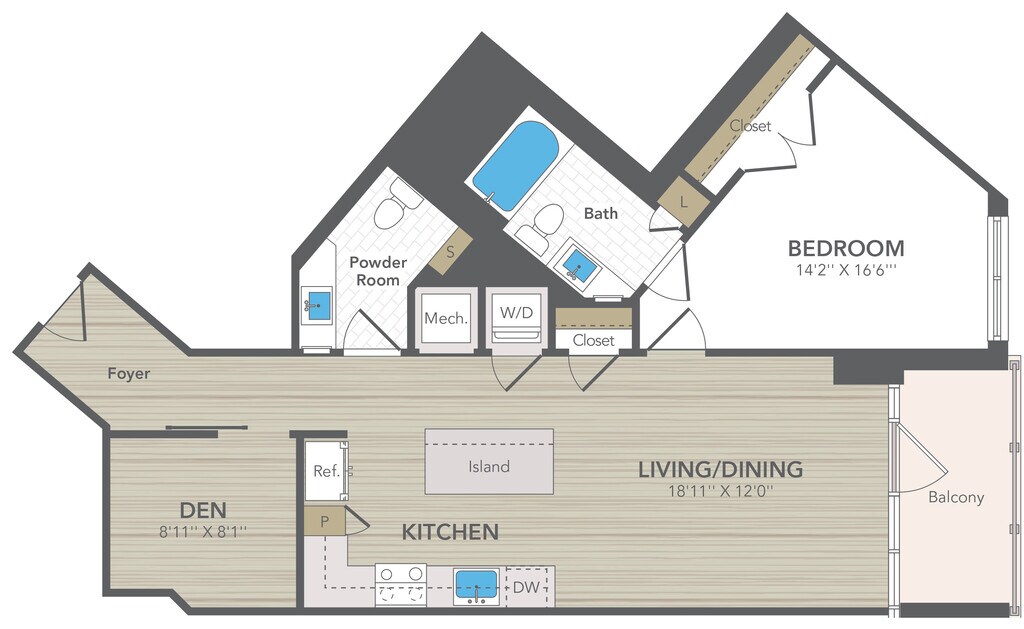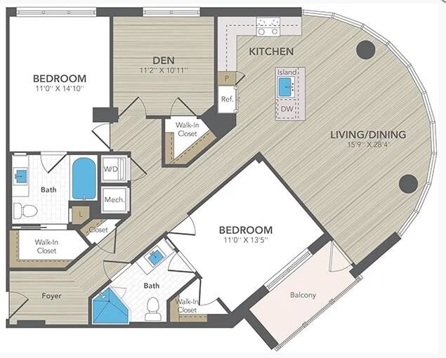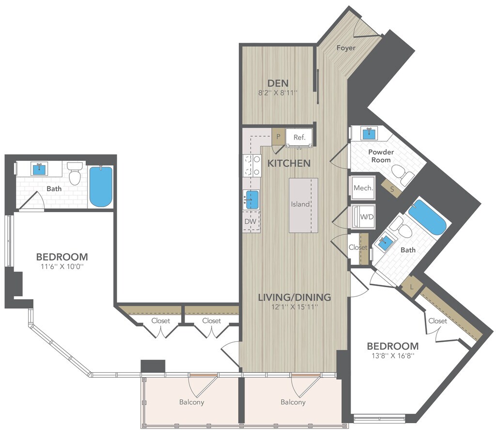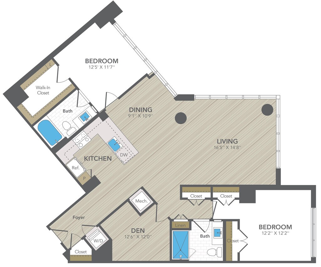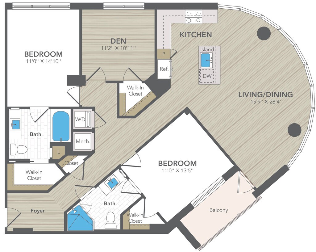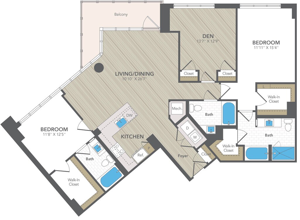 Apartment Model: 1 Bed 2 Bath with Den$2,9551 Bedroom, 2 Bath, 970 sq ftAvailable November 30, 2026![]()