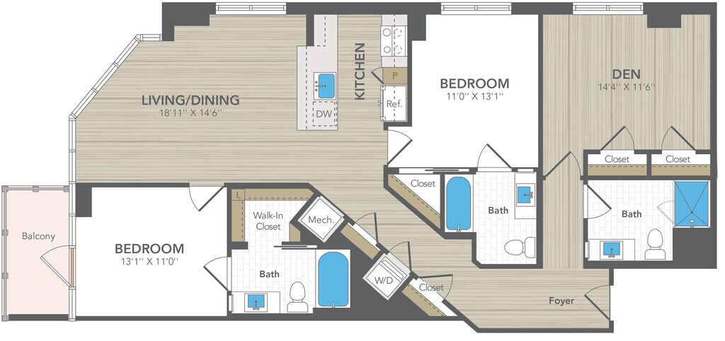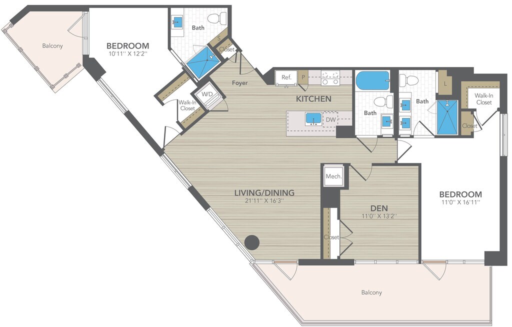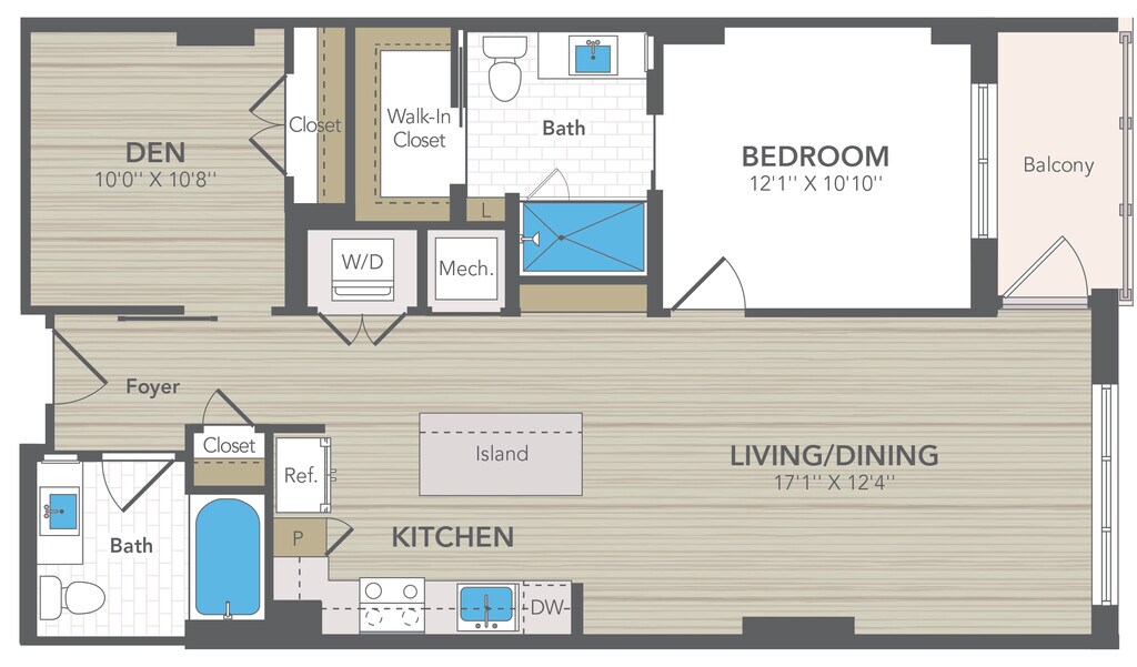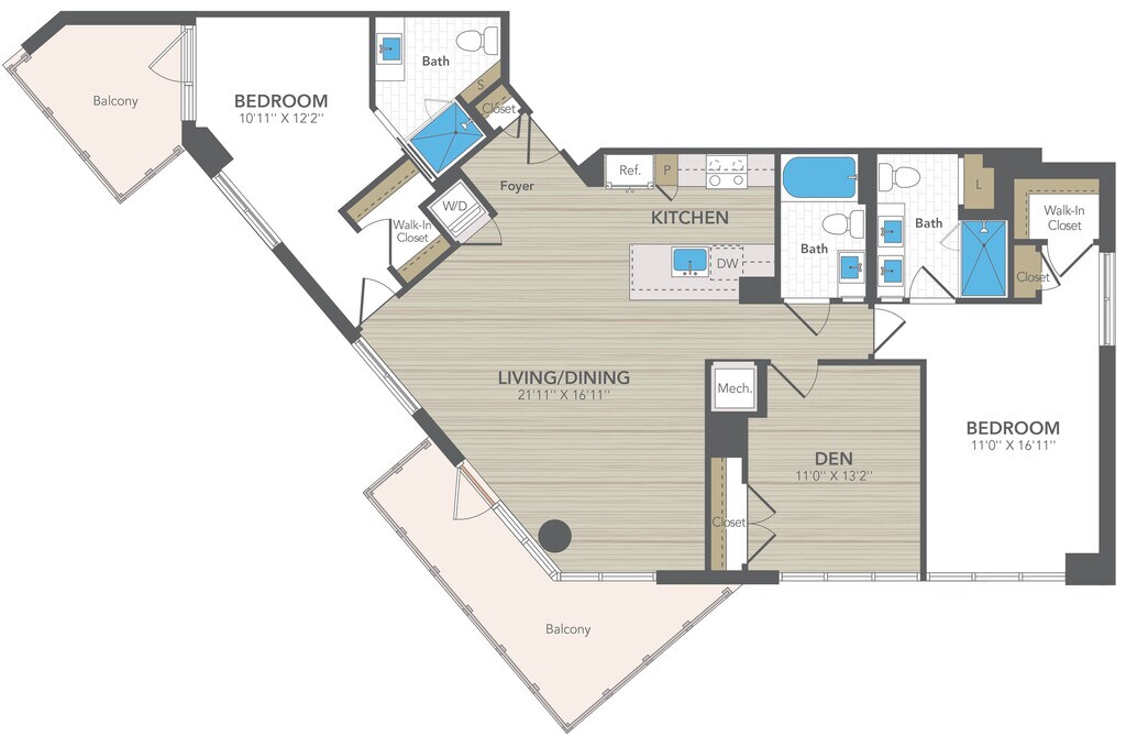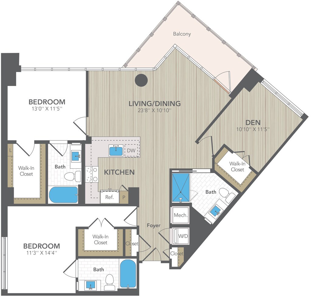 1 Bed 2 Bath with Den - Floorplan 1 Apartment Unit: 001-0311Apartment Model: 1 Bed 2 Bath with Den$2,9551 Bedroom, 2 Bath, 970 sq ftAvailable November 30, 20261 Bed 1 Bath Sm Affordabl