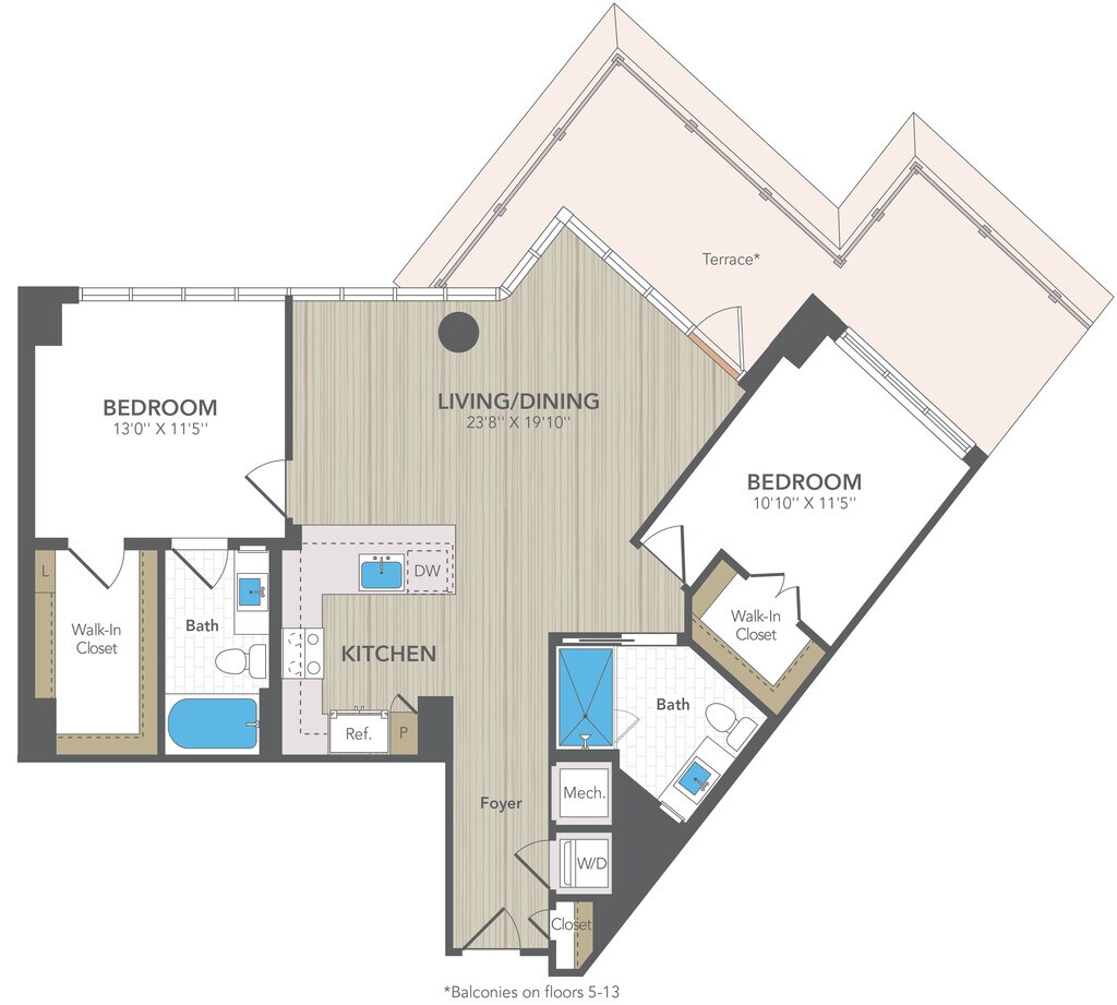 1 Bed 1 Bath Med Pent Hse - Floorplan 1 Apartment Unit: 001-1505Apartment Model: 1 Bed, 1 bath$2,6001 Bedroom, 1 Bath, 729 sq ftAvailable Now1 Bed 1 Bath Lrg Afford