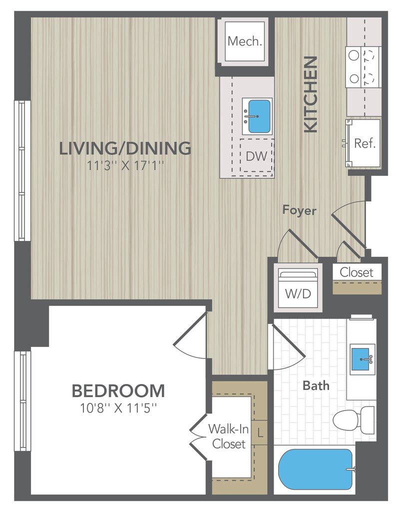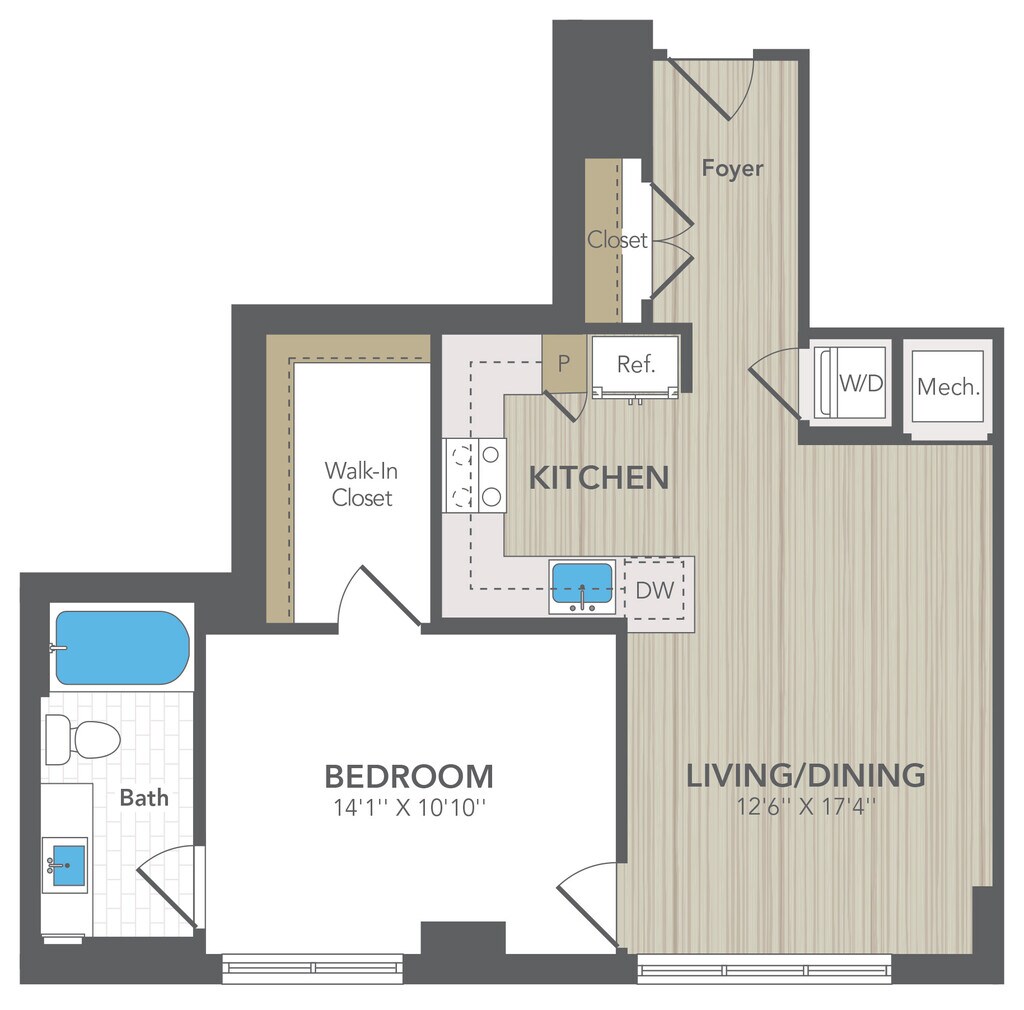 1 Bed 1 Bath Sm/Med Affrd - Floorplan 1 1 Bed 1 Bath Med Pent Hse