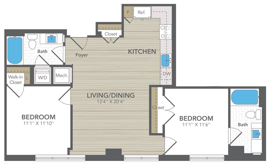 1 Bed, 2 Baths, 970 sq ftAvailable November 30, 2026Largest 1 BedroomThis is the largest 1 Bedroom at this PropertyModel Gallery