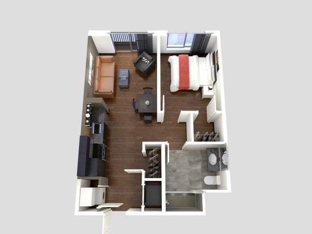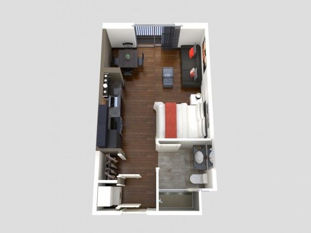Studio-Balcony/Top Floor - Floorplan 1 Furnished Studio Apartments