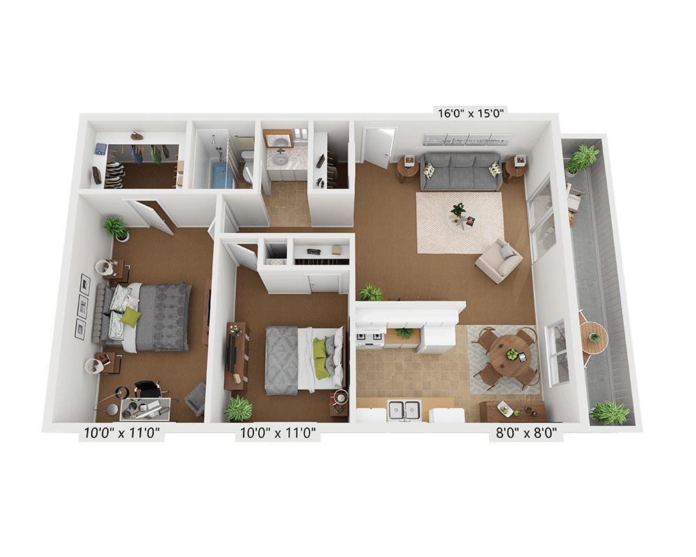 Apartment Model: Plan B12 Bedroom, 1 Bath, 917 sq ftUnavailable![]()