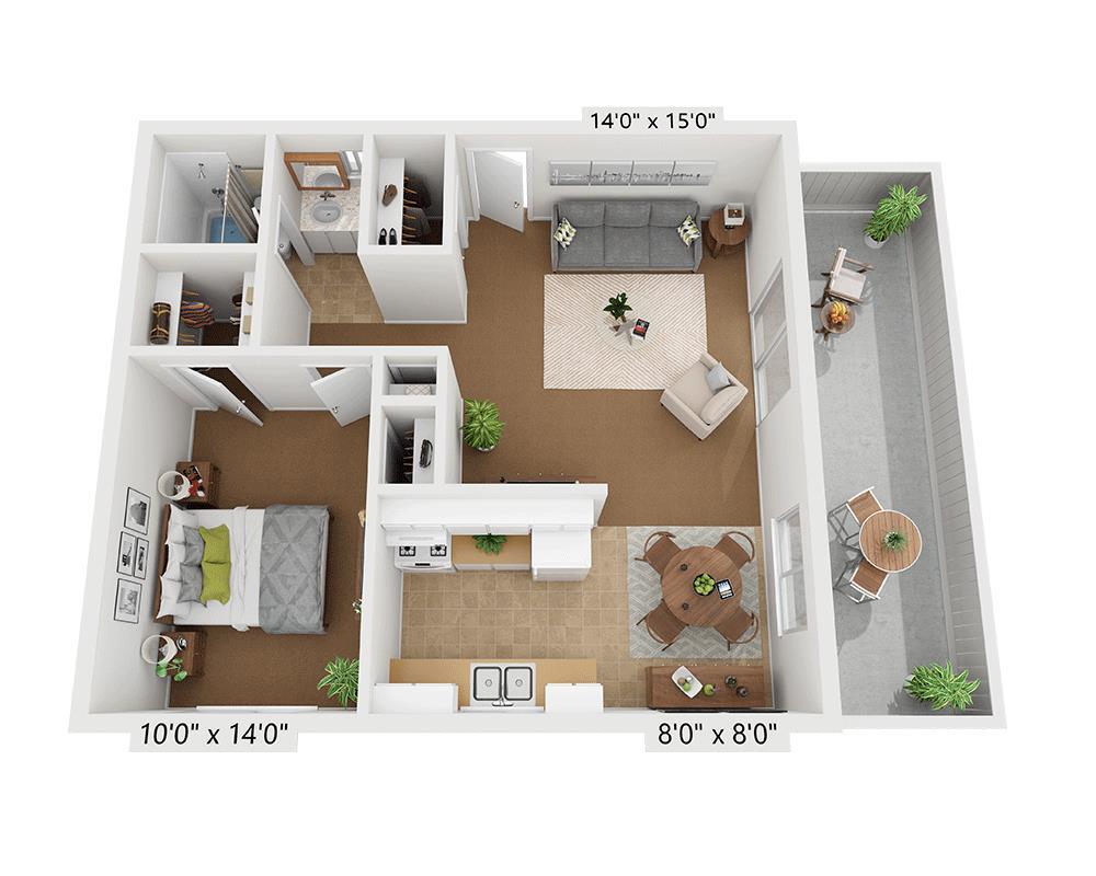 1 Bed, 1 Bath, 672 sq ftModel Gallery