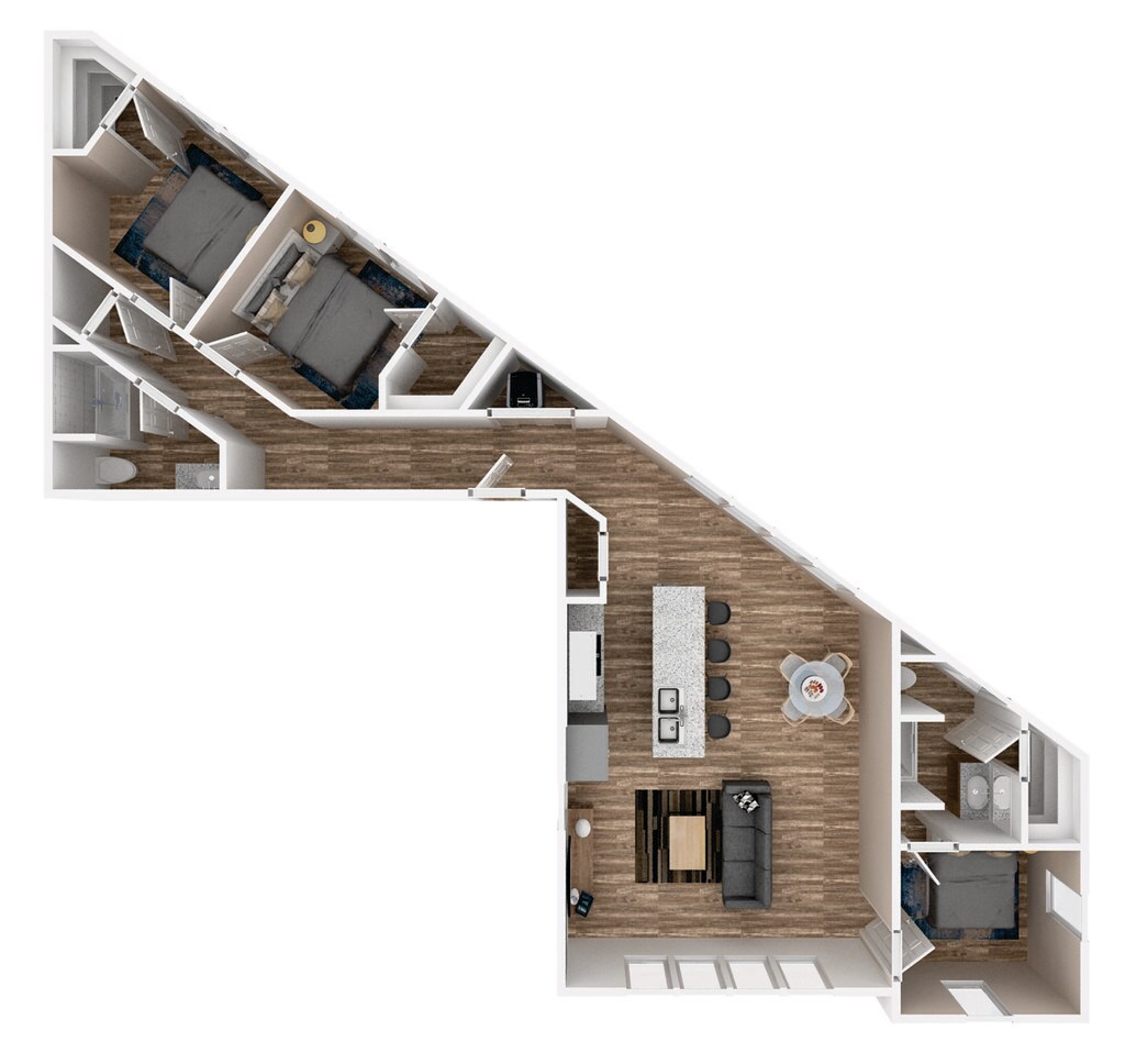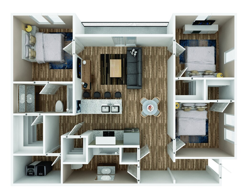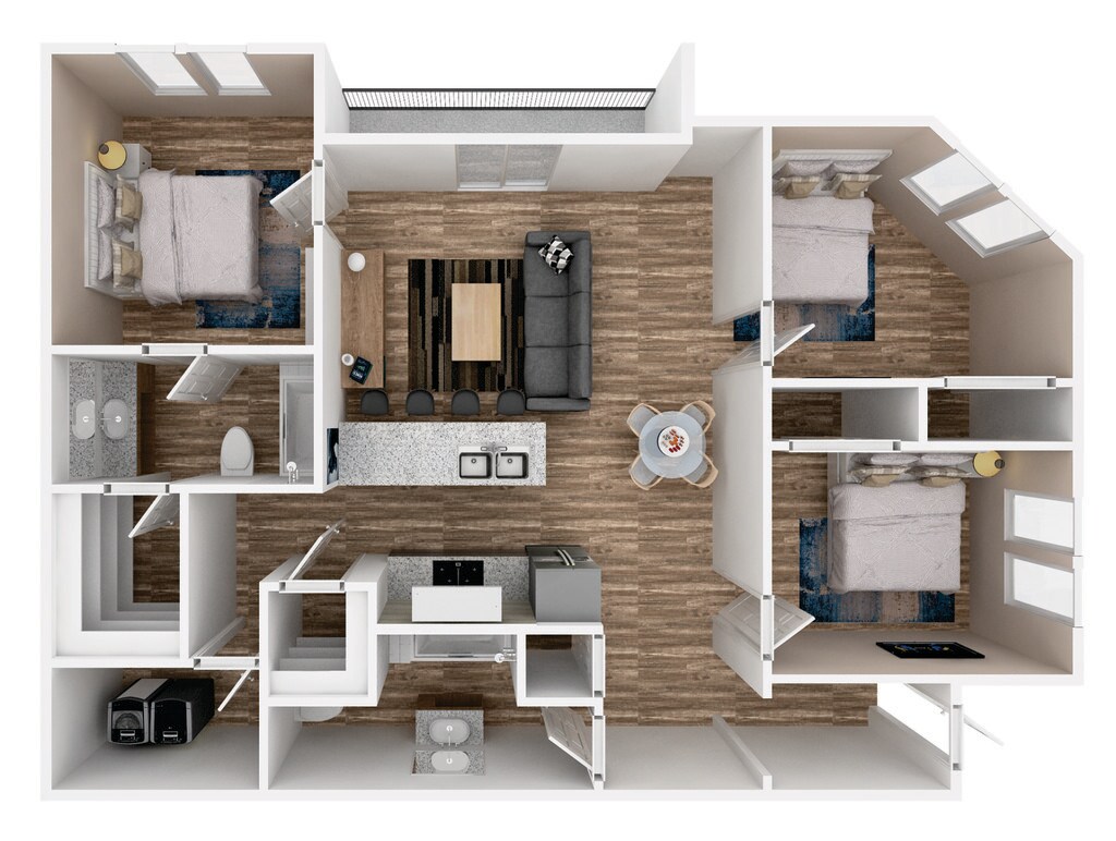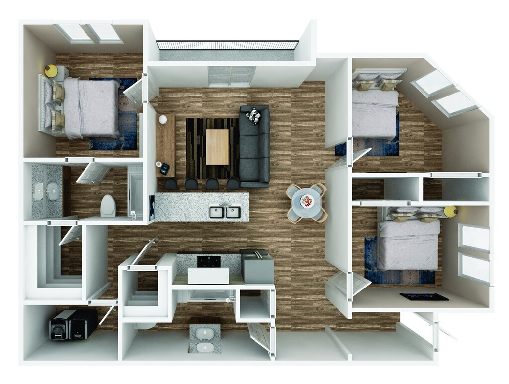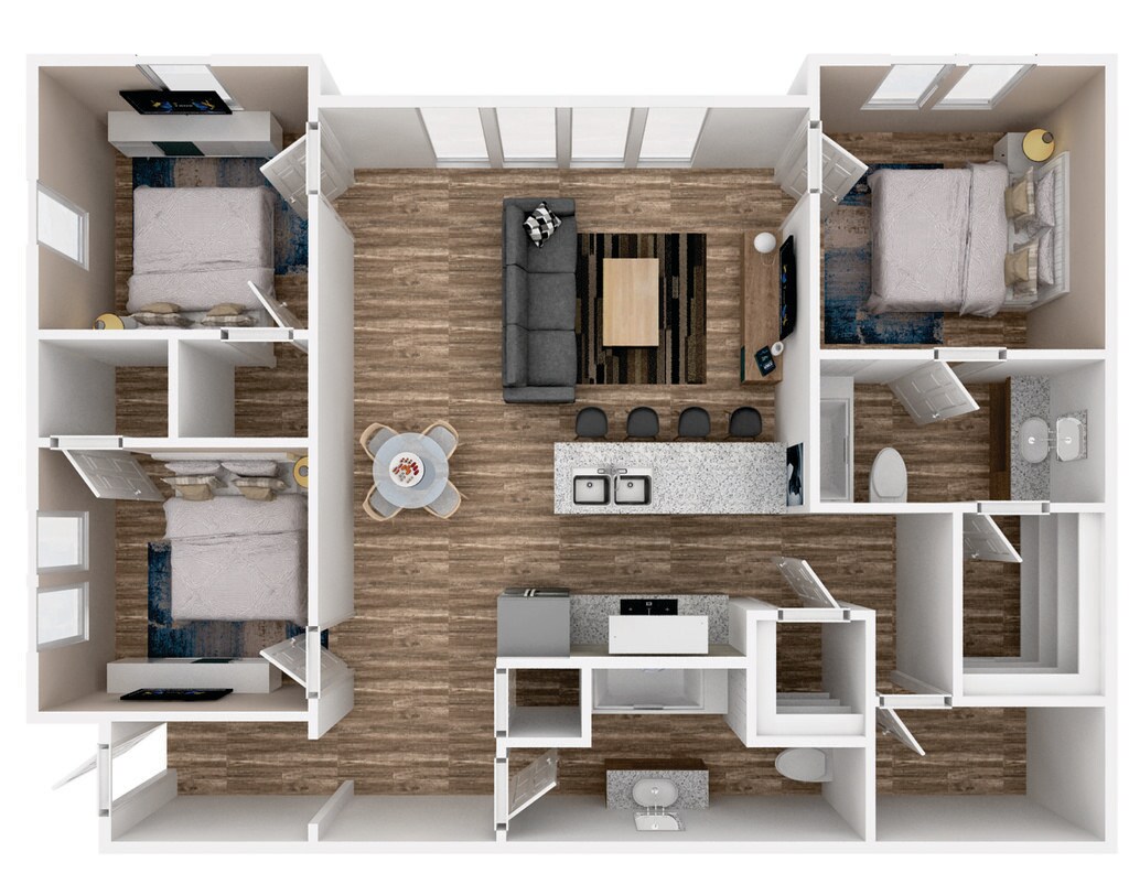 3-Bedroom / 2-Bath - Floorplan 3 Apartment Unit: A213Apartment Model: 3-Bedroom / 2-Bath3 Bedroom, 2 Bath, 1431 sq ftAvailable Now3-Bedroom / 2-Bath