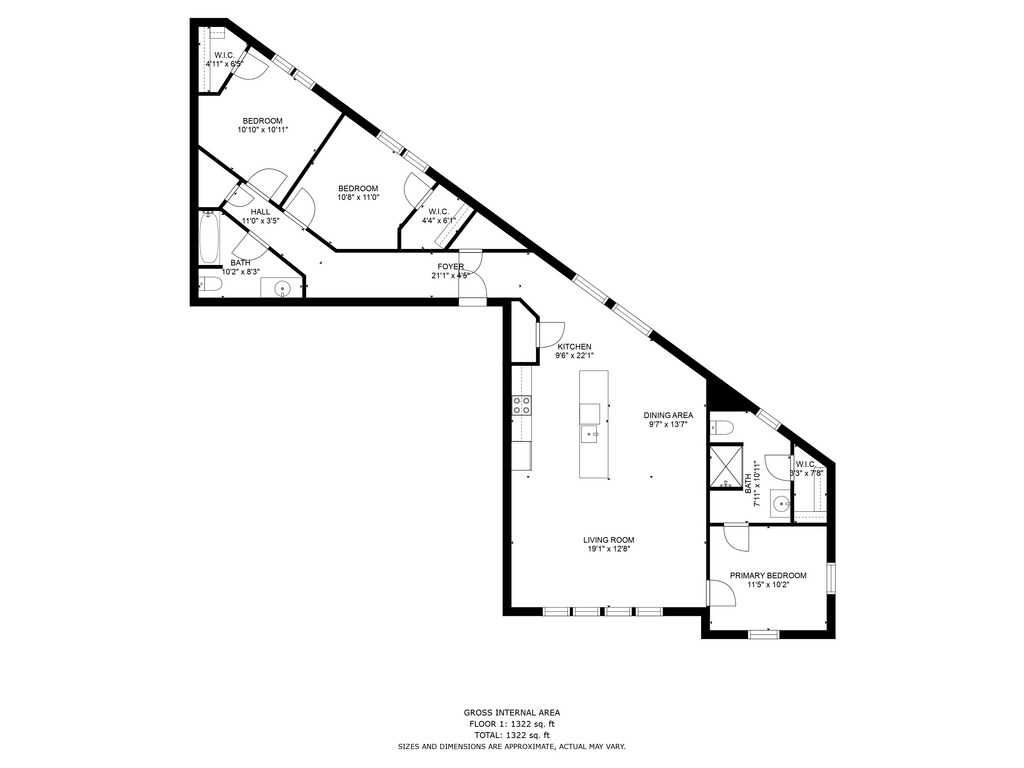 1-Bedroom / 1-Bath - Floorplan 3 2 Bedrooms