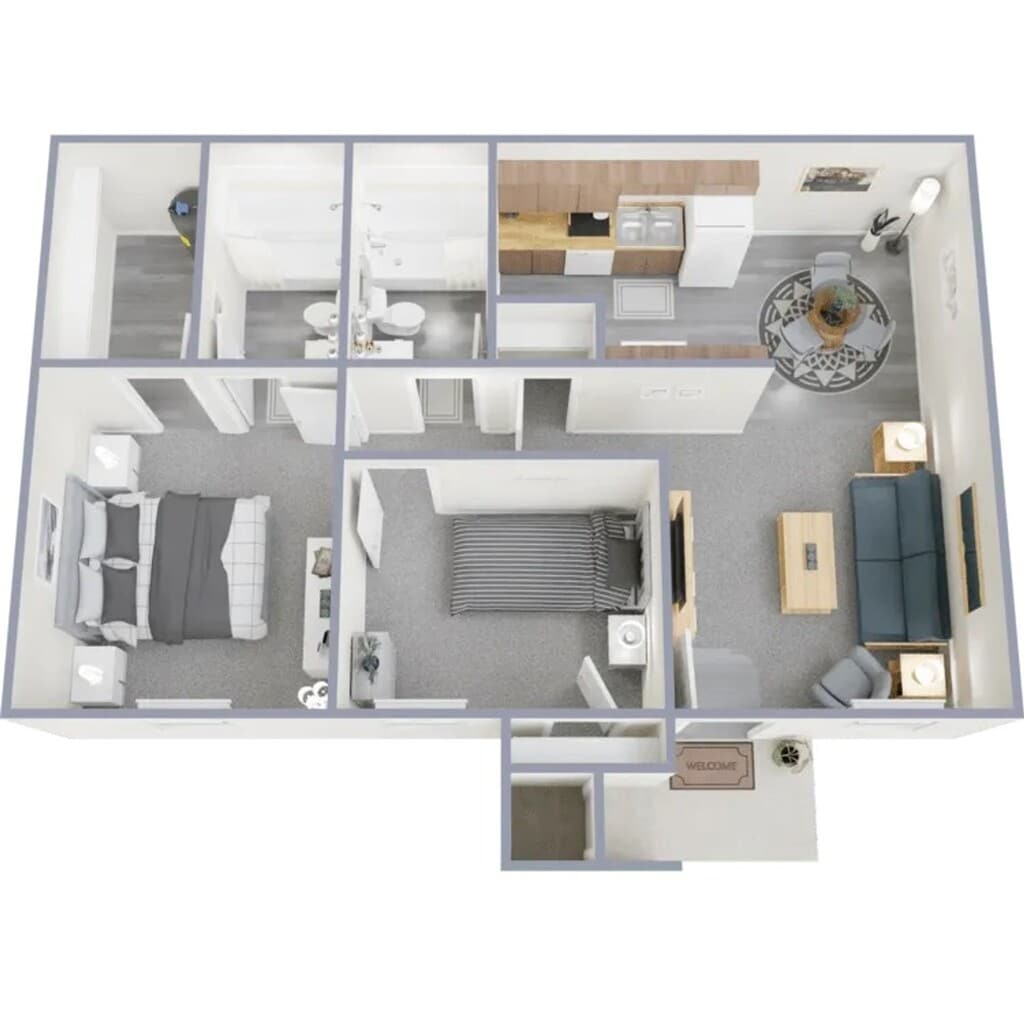 A1 Renovated - Floorplan 9 Apartment Unit: 206Apartment Model: A1 Renovated$9401 Bedroom, 1 Bath, 472 sq ftAvailable Now2 Bedrooms