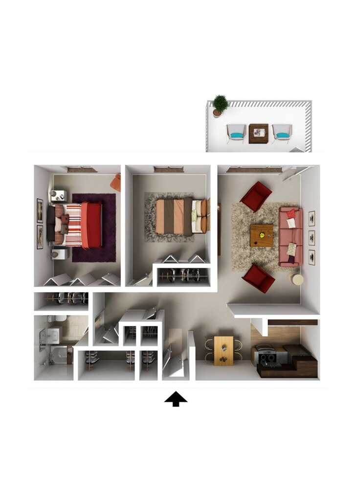 One Bedroom w/Patio - Floorplan 3 2 Bedrooms