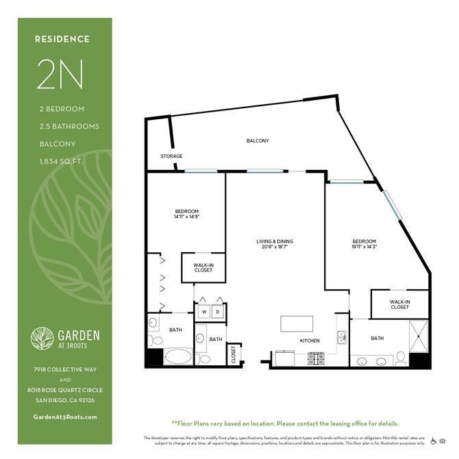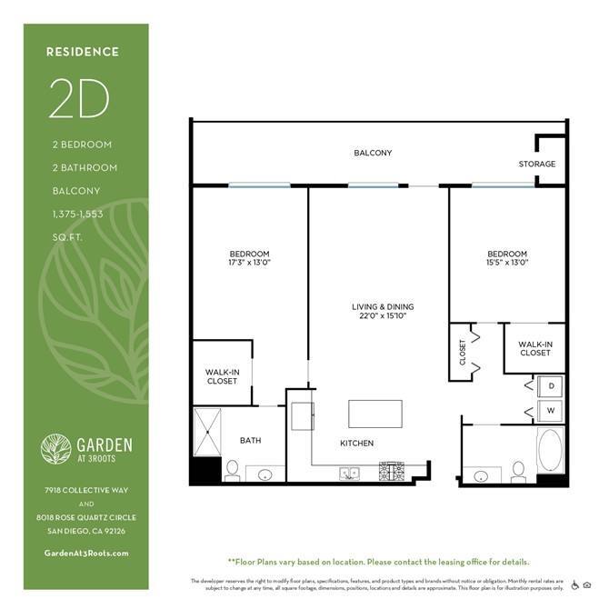 1 Bedroom to 2 Bedroom Apartments at Garden at 3Roots currently range from $3,175 to $5,465