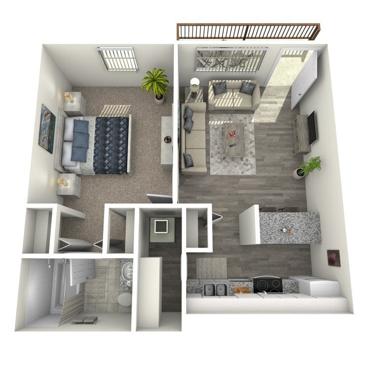Apartment Model: 1 Bedroom 1 BathroomFrom $1,0501 Bedroom, 1 Bath, 525-720 sq ftAvailable Now![]()
