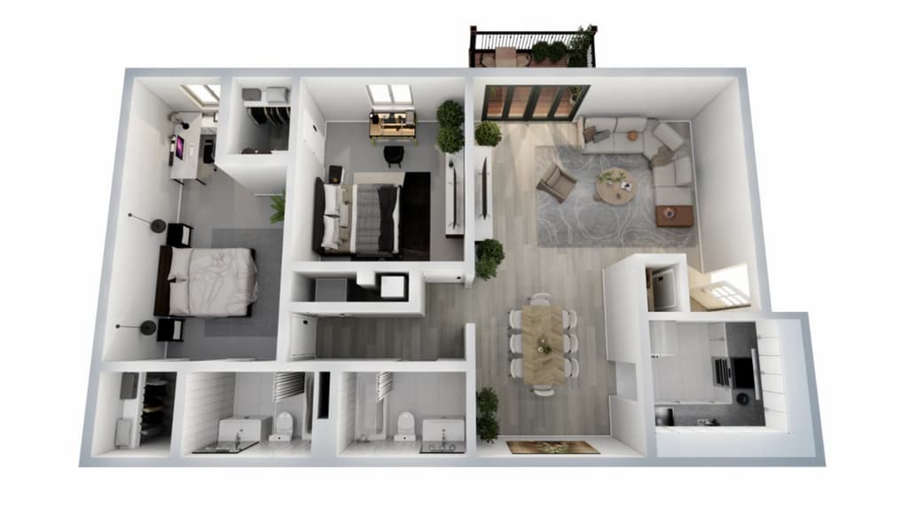 2 Beds, 2 Baths, 1015 sq ftAvailable NowModel Gallery