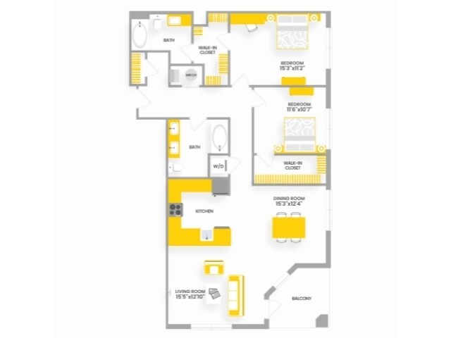 D2 - Floorplan 1 Apartment Unit: 01532Apartment Model: D22 Bedroom, 2 Bath, 1234 sq ftAvailable NowFloorplan L2