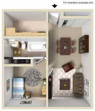 Studio, 1 Bath, 550 sq ftAvailable NowModel Gallery