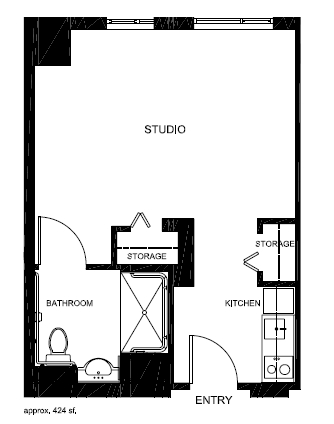 Studio, 1 Bath, 424 sq ftAvailable NowAvailability Details