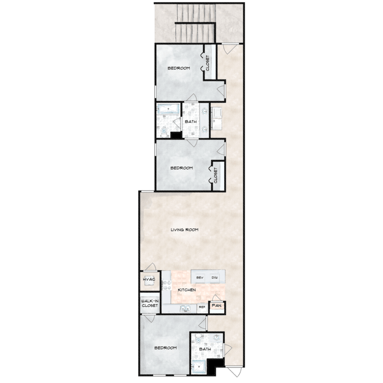 3 Beds, 2 Baths, 457 sq ftModel Gallery