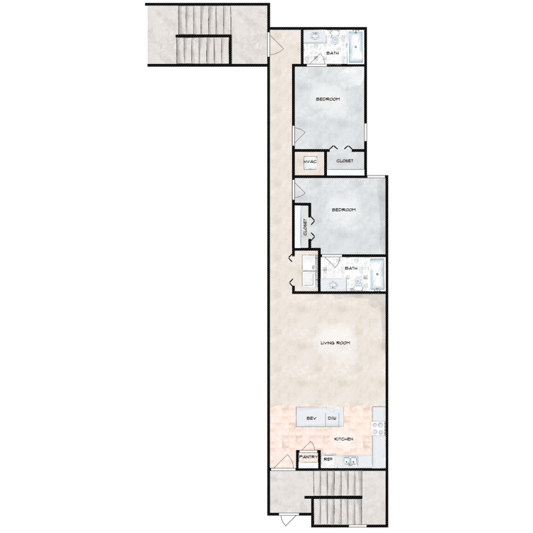 2 Beds, 2 Baths, 552 sq ftModel Gallery
