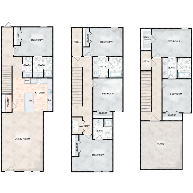 3 Beds, 3 Baths, 457-461 sq ftAvailability Details