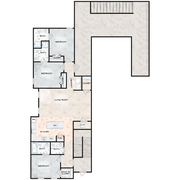 Apartment Model: 3 Bedroom PP by the Bedspace3 Bedroom, 3.5 Bath, 461 sq ftUnavailable3 Bedroom PP by the Bedspace - Floorplan 1 4 Bedrooms
