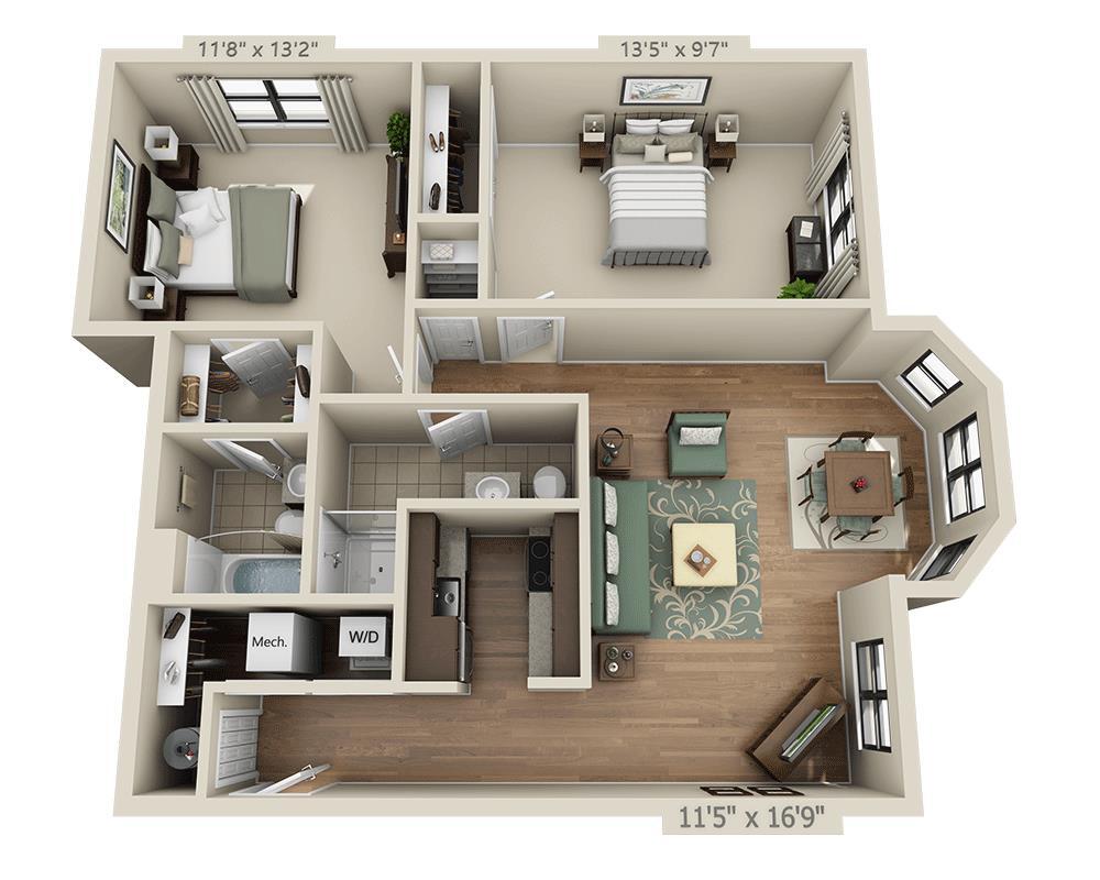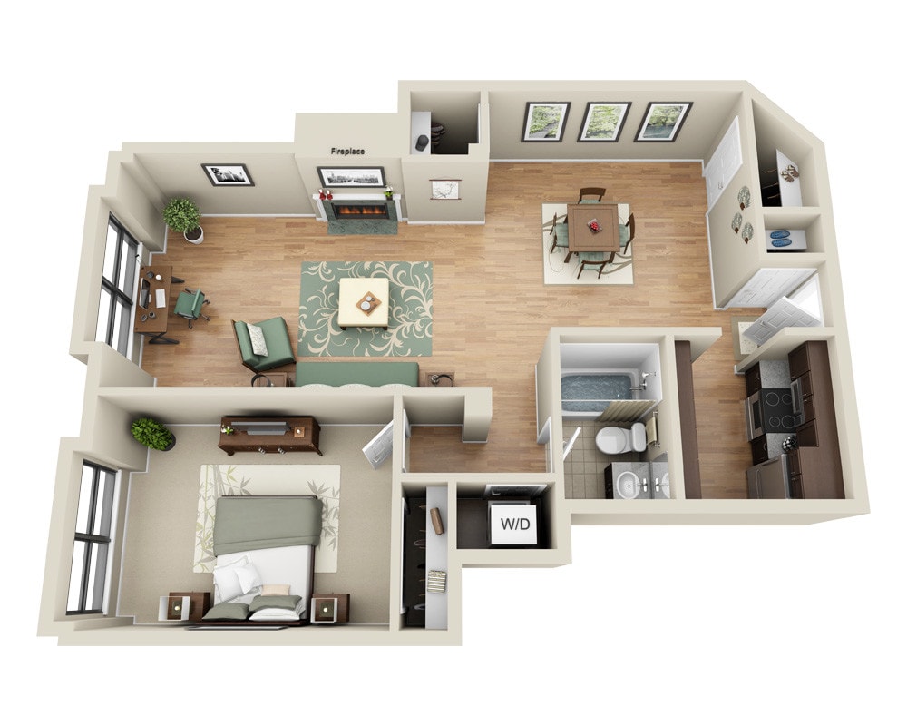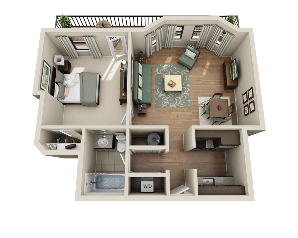 1 Bed, 1 Bath, 583 sq ftModel Gallery