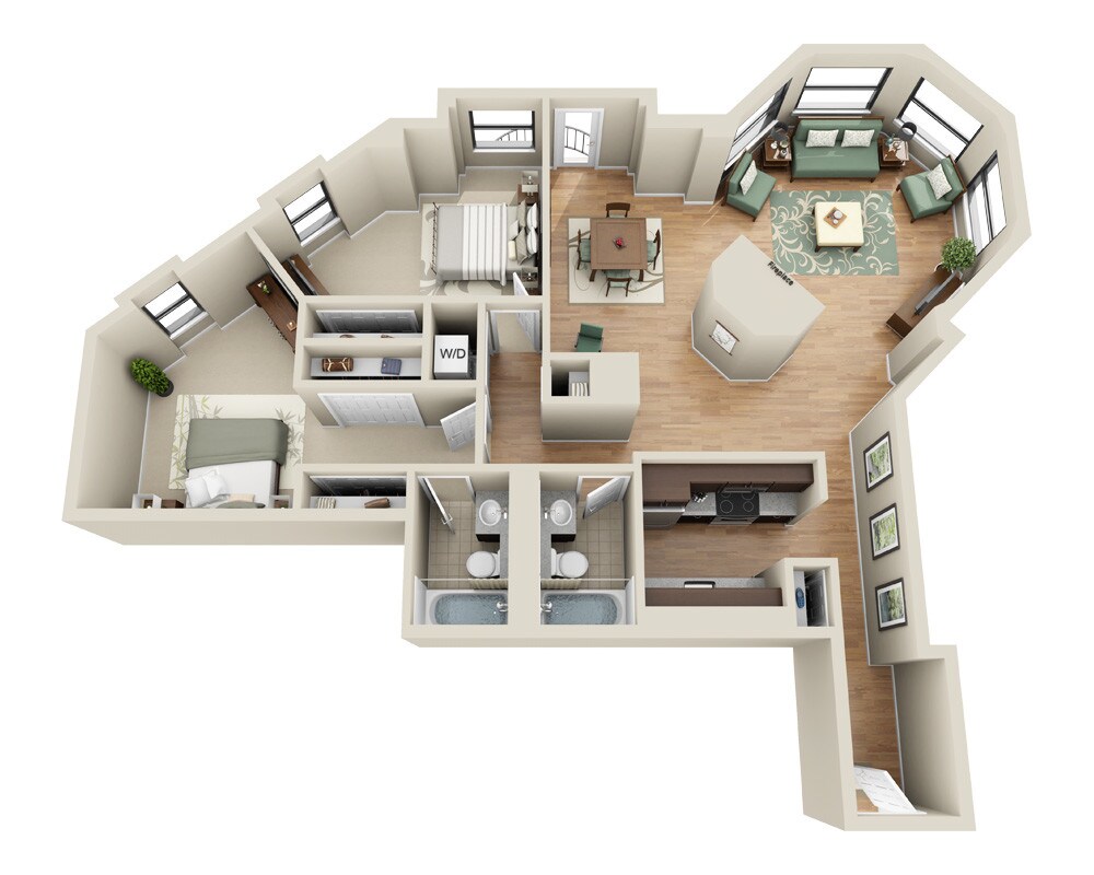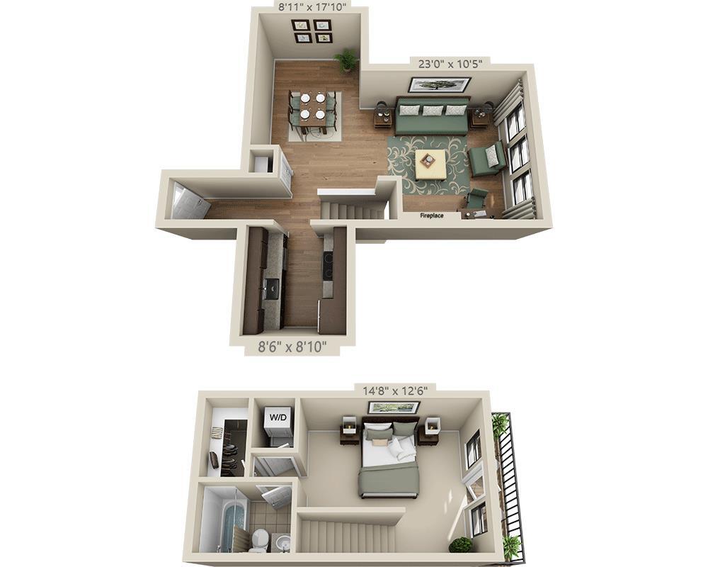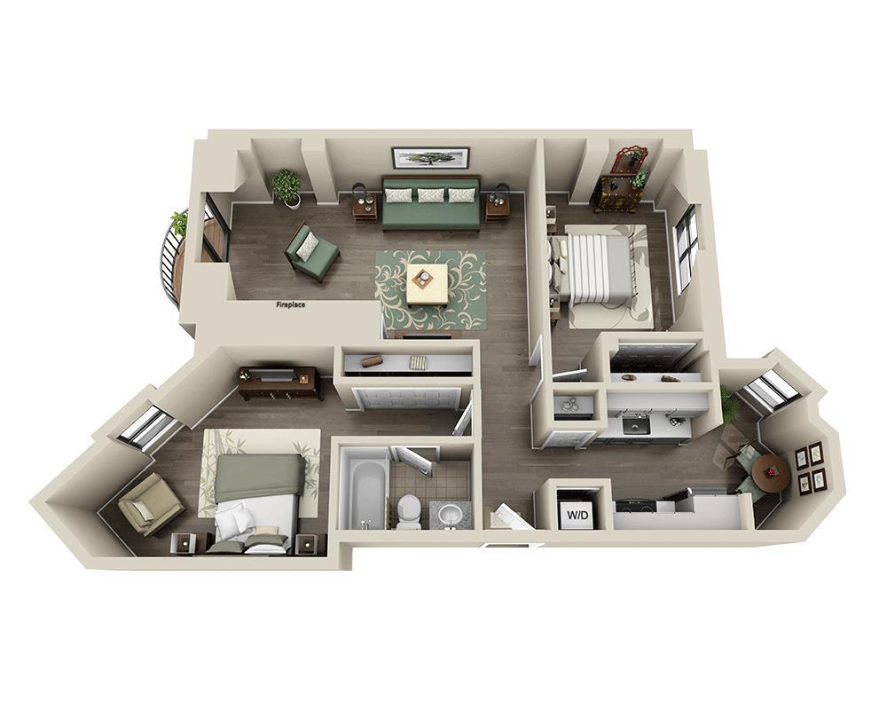 1 Bed, 1 Bath, 647 sq ftModel Gallery