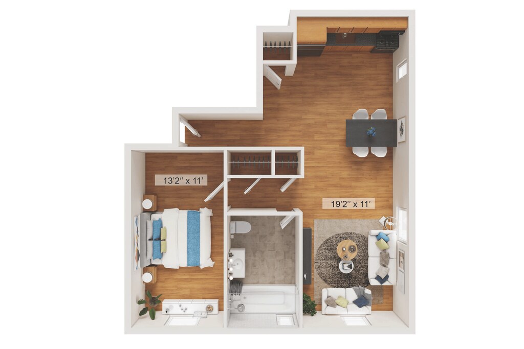 1 Bedroom III - Floorplan 1 Apartment Unit: B-13Apartment Model: 1 Bedroom III$2,0191 Bedroom, 1 Bath, 475 sq ftAvailable December 1, 20251 Bedroom II