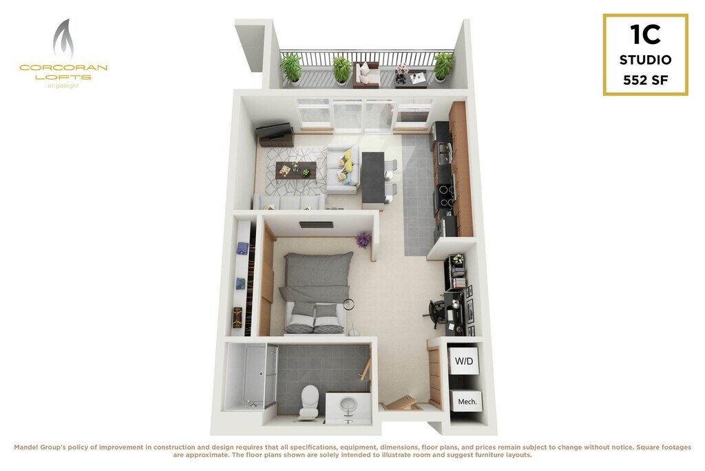 Studio, 1 Bath, 552 sq ftModel Gallery