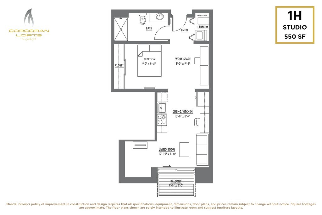 Studio, 1 Bath, 550 sq ftModel Gallery