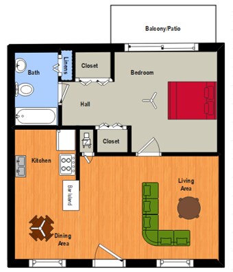 Louisville 1 Bed, 1 Bath with W/D Hook-Up - Floorplan 1 ![]()