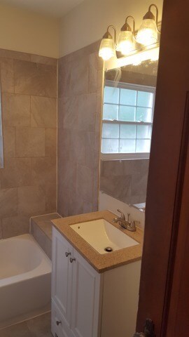 - Marble Tile Bathrooms with Solid Surface Countertop