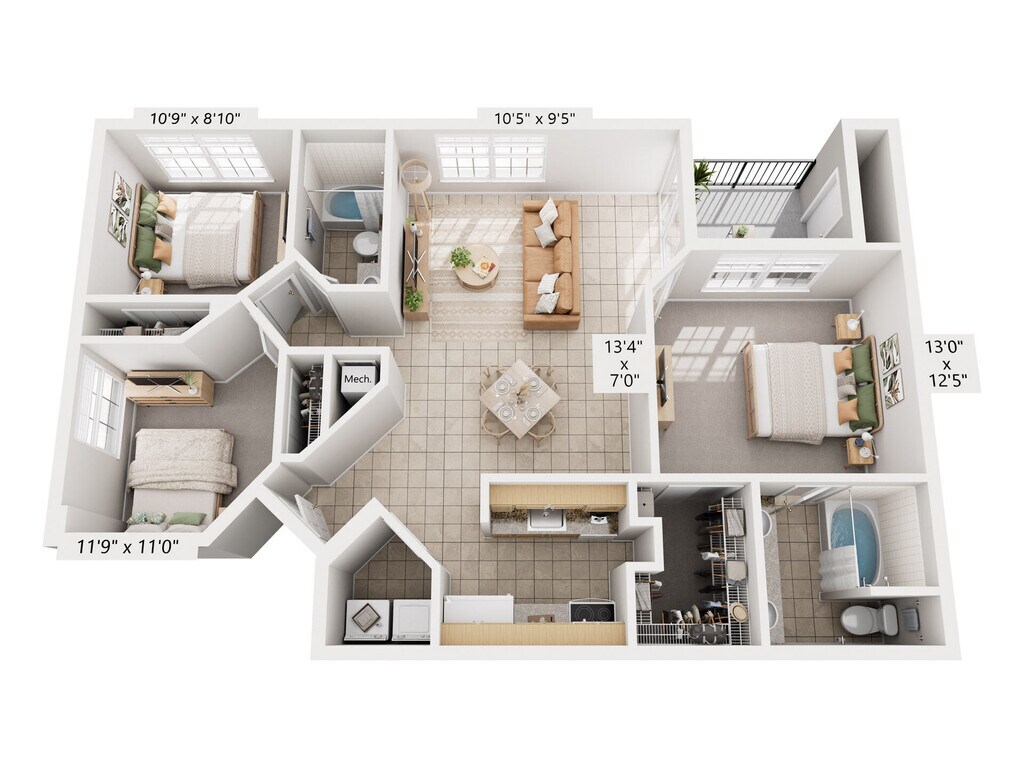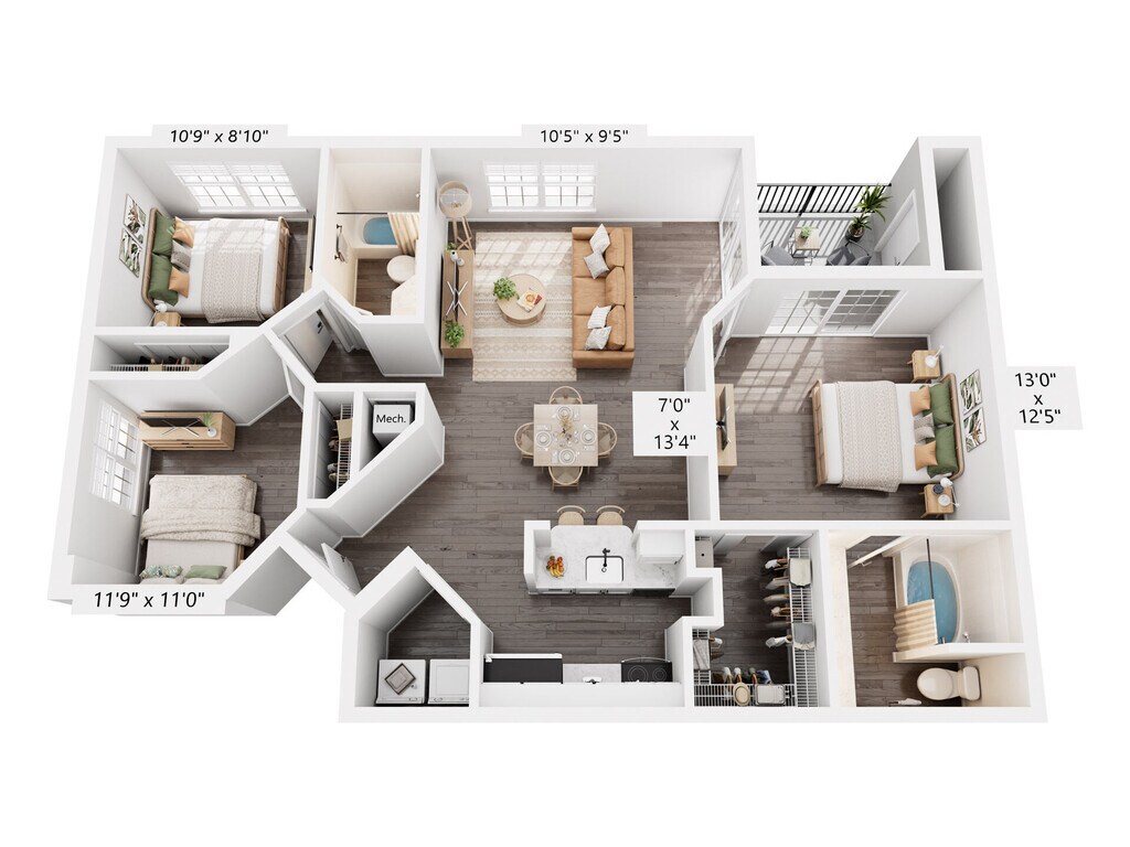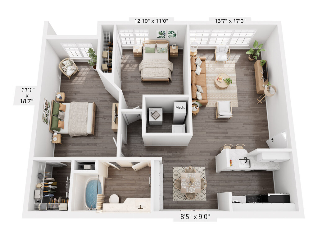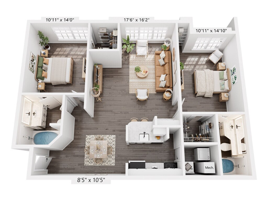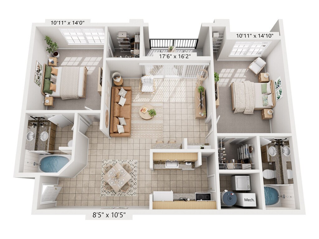 2 Beds, 2 Baths, 1121 sq ftAvailable NowModel Gallery