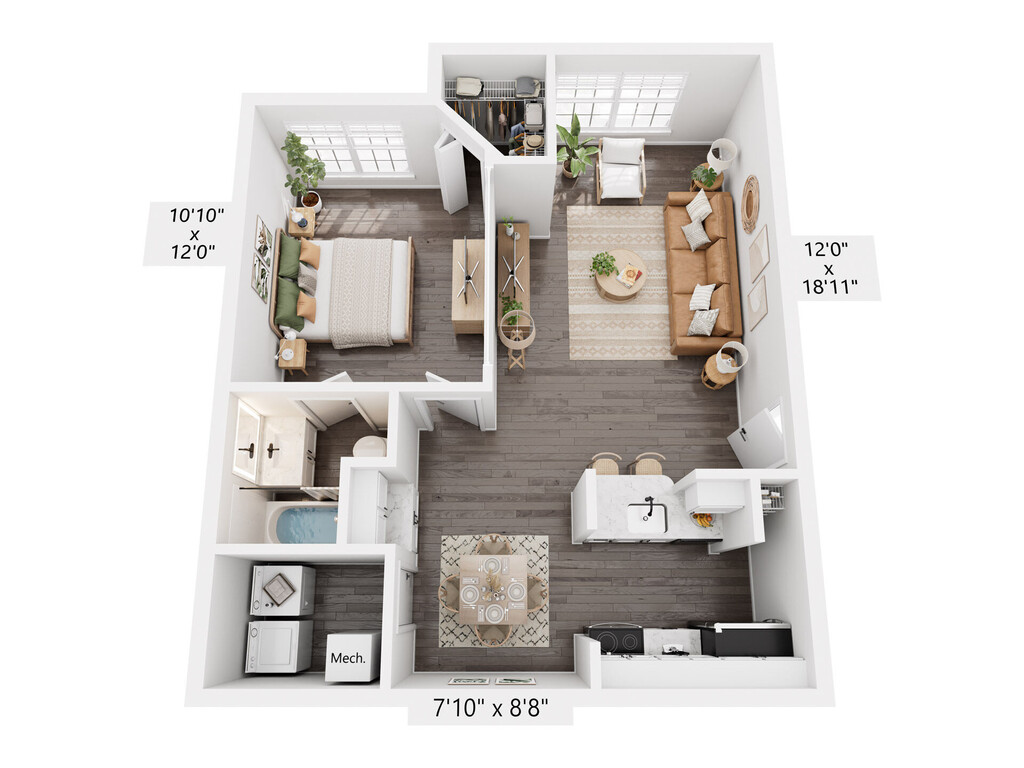 1 Bed, 1 Bath, 830 sq ftModel Gallery
