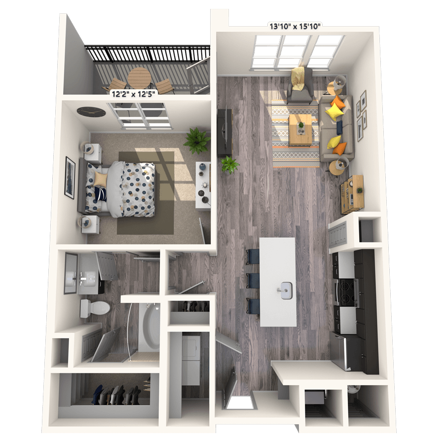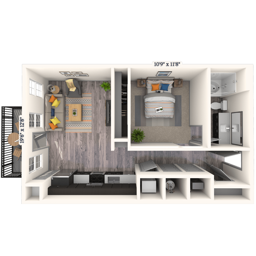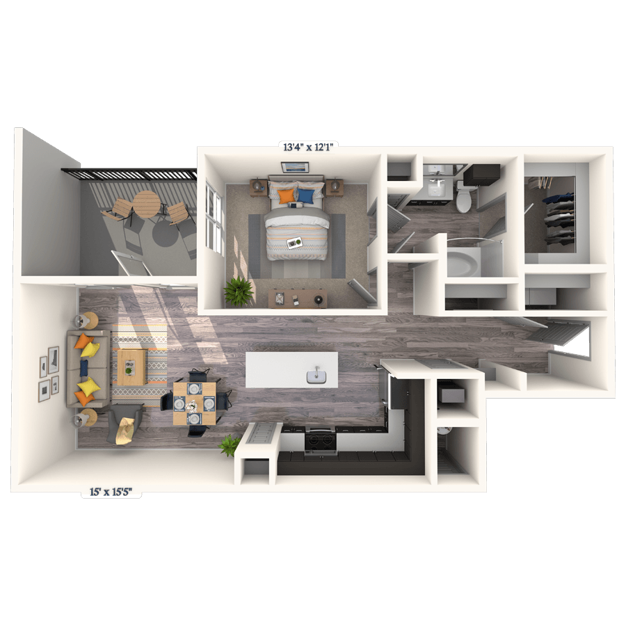Studio, 1 Bath, 614 sq ftTotal Monthly PriceAvailable NowModel Gallery